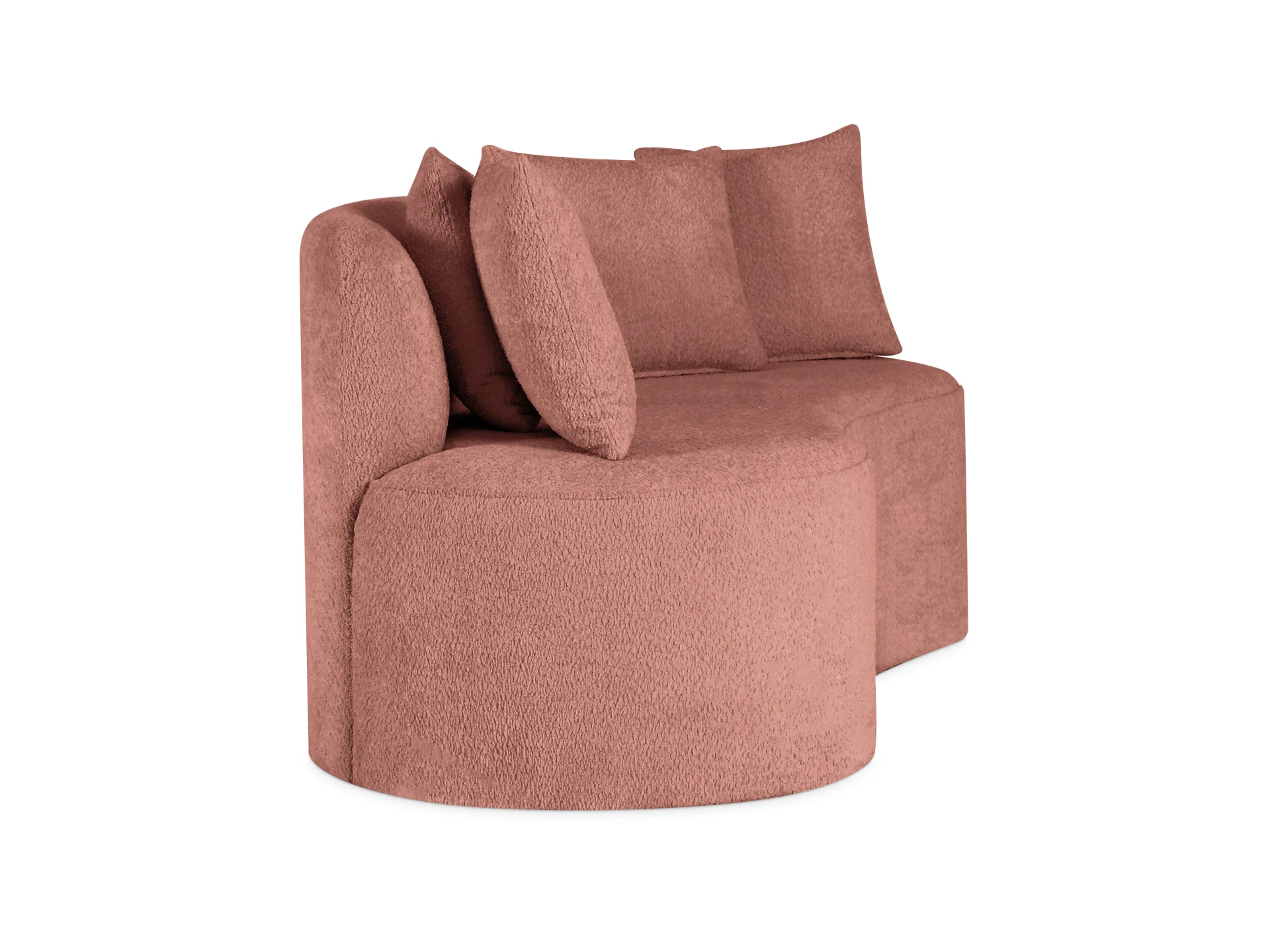 Высокая спинка и декоративные подушки обеспечивают комфортную поддержку, формируя ощущение уюта, защищенности и уединения. Модель производится только в правом исполнении: загиб спинки расположен с правой стороны.