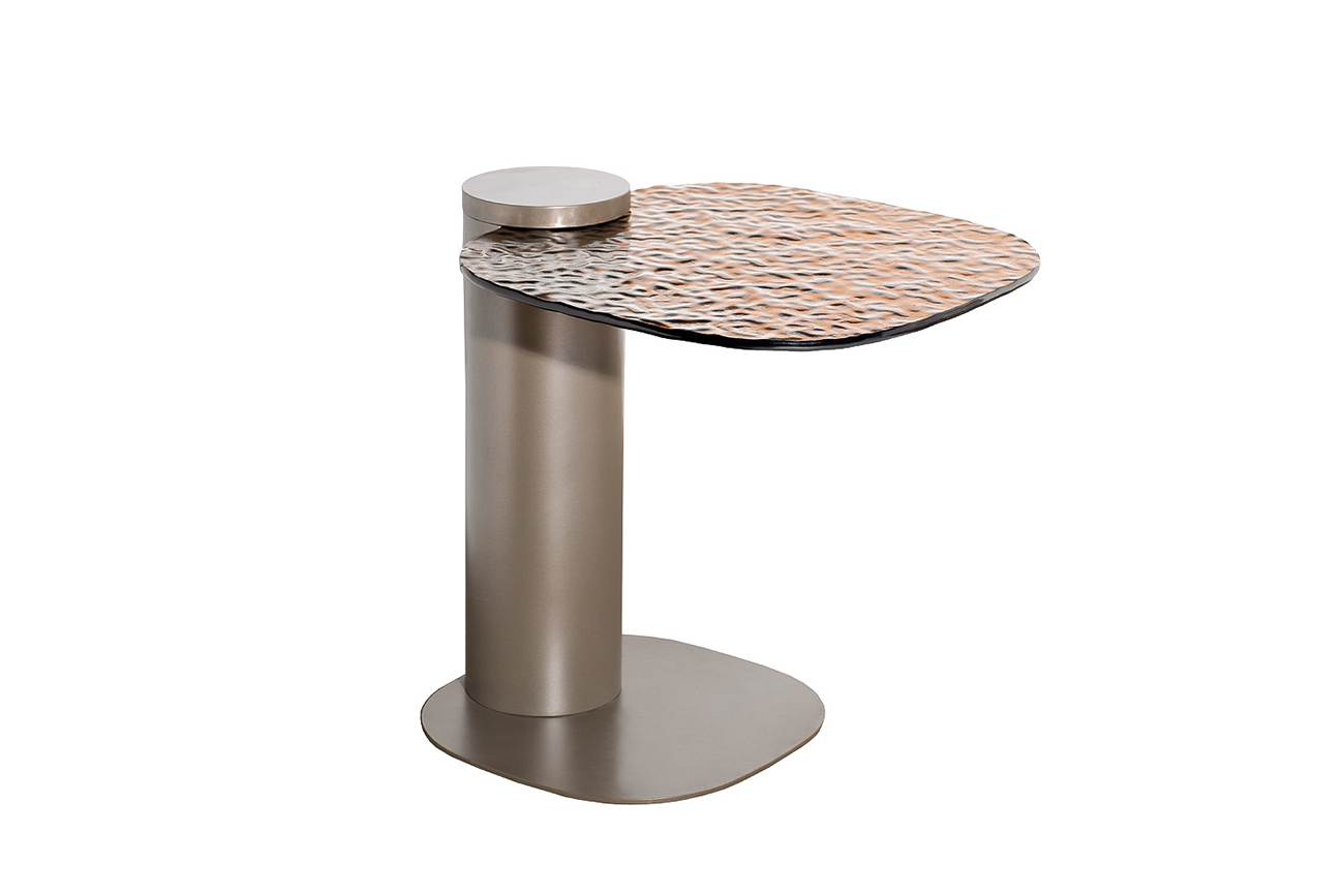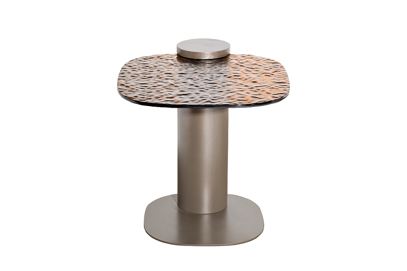 57EL-11180 Стол журнальный приставной, стекло рельефное тонированное 45*48*50см