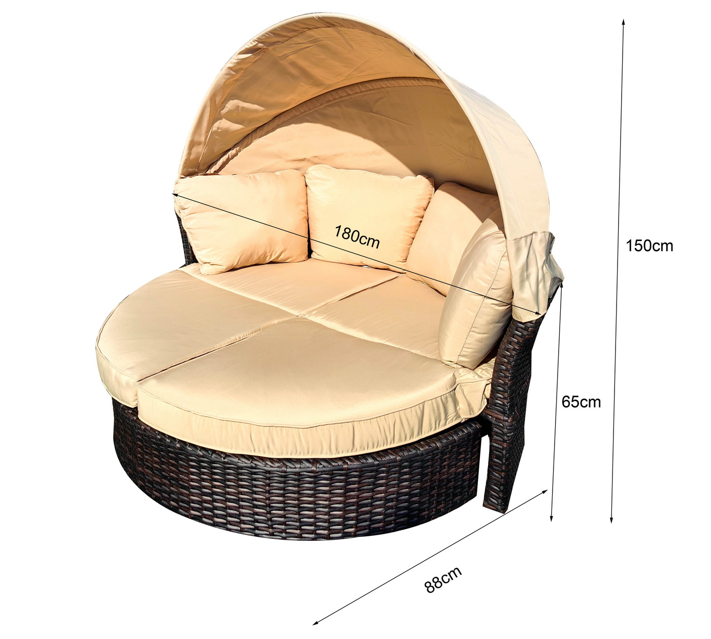 «Амальфи» плетеная кровать-трансформер, цвет коричневый, подушки бежевые