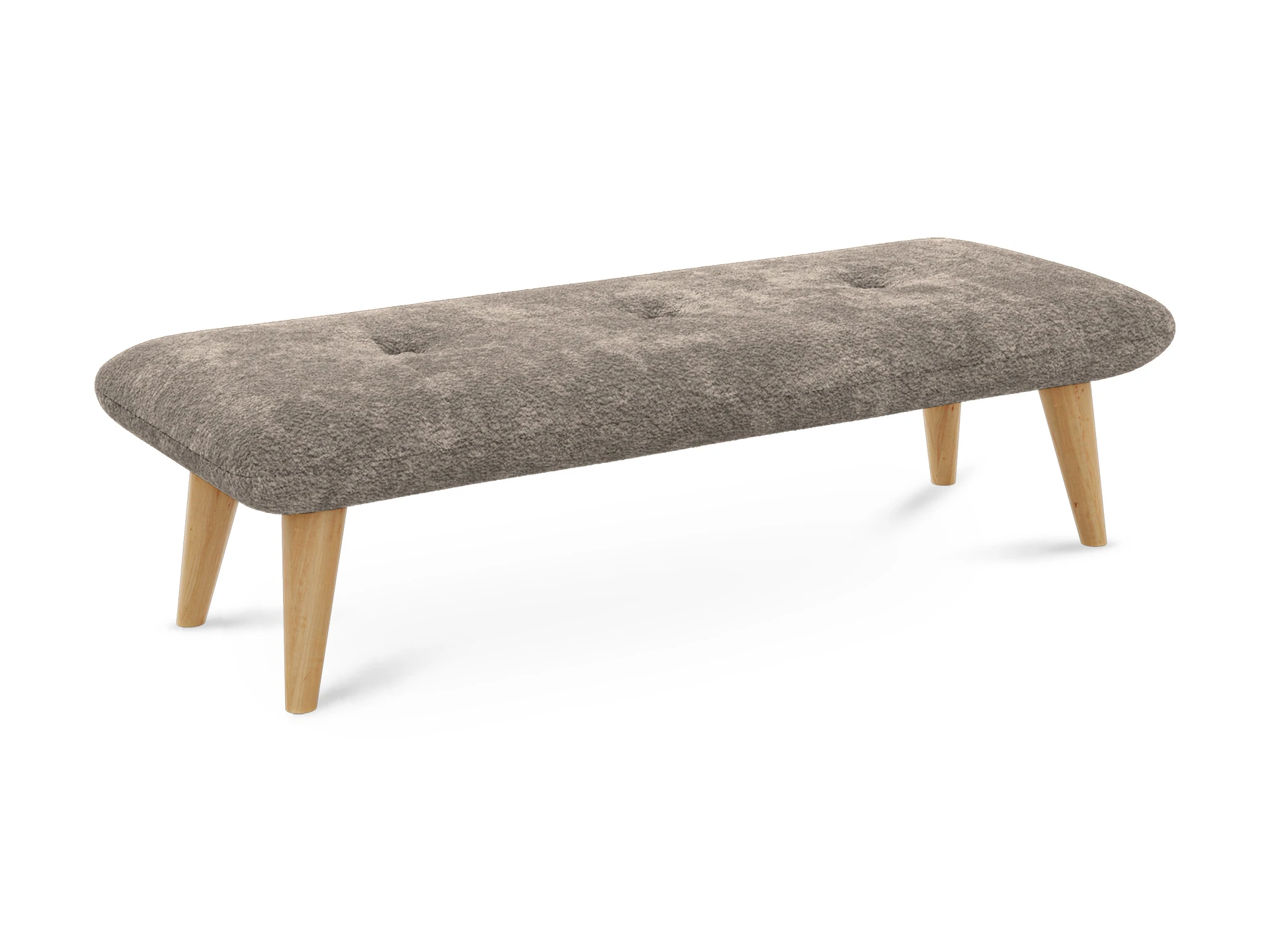 Невысокие (200 мм) ножки изготовлены из массива бука, дополнены фетровыми подпятниками, благодаря которым они не царапают напольное покрытие. Каркас выполнен из брусков дерева хвойных пород. А для максимального комфорта сидящего мы добавили в качестве наполнителя пенополиуретан марки ST (22/36) и синтепон – упругие, удобные, не теряющие формы даже при активном использовании мебели. Чехол из приятной на ощупь фактурной ткани несъёмный, декорирован пуговицами.