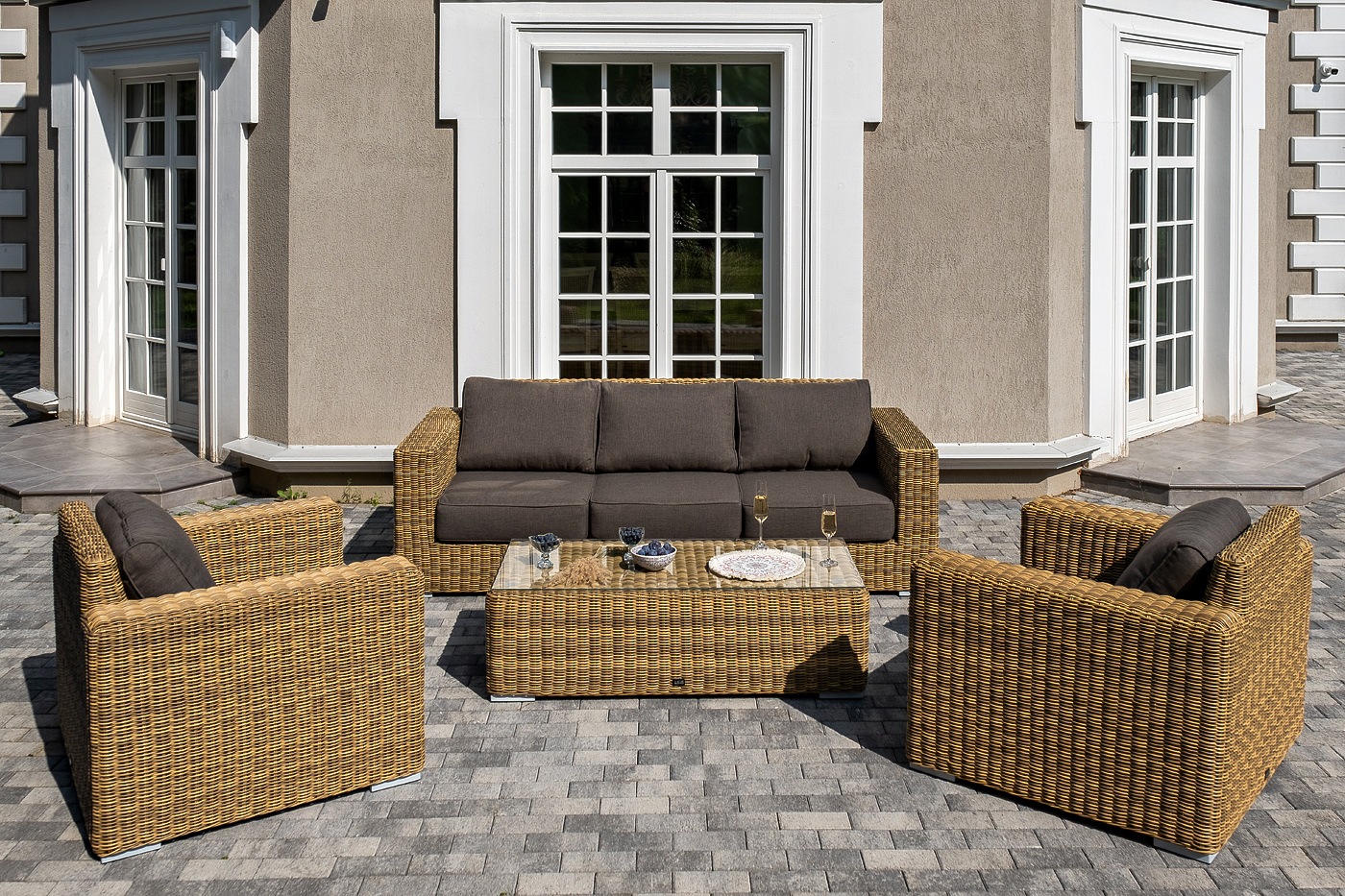 Комплект «Боно» с плетением из искусственного круглого ротанга для обустройства лаунж-зоны.