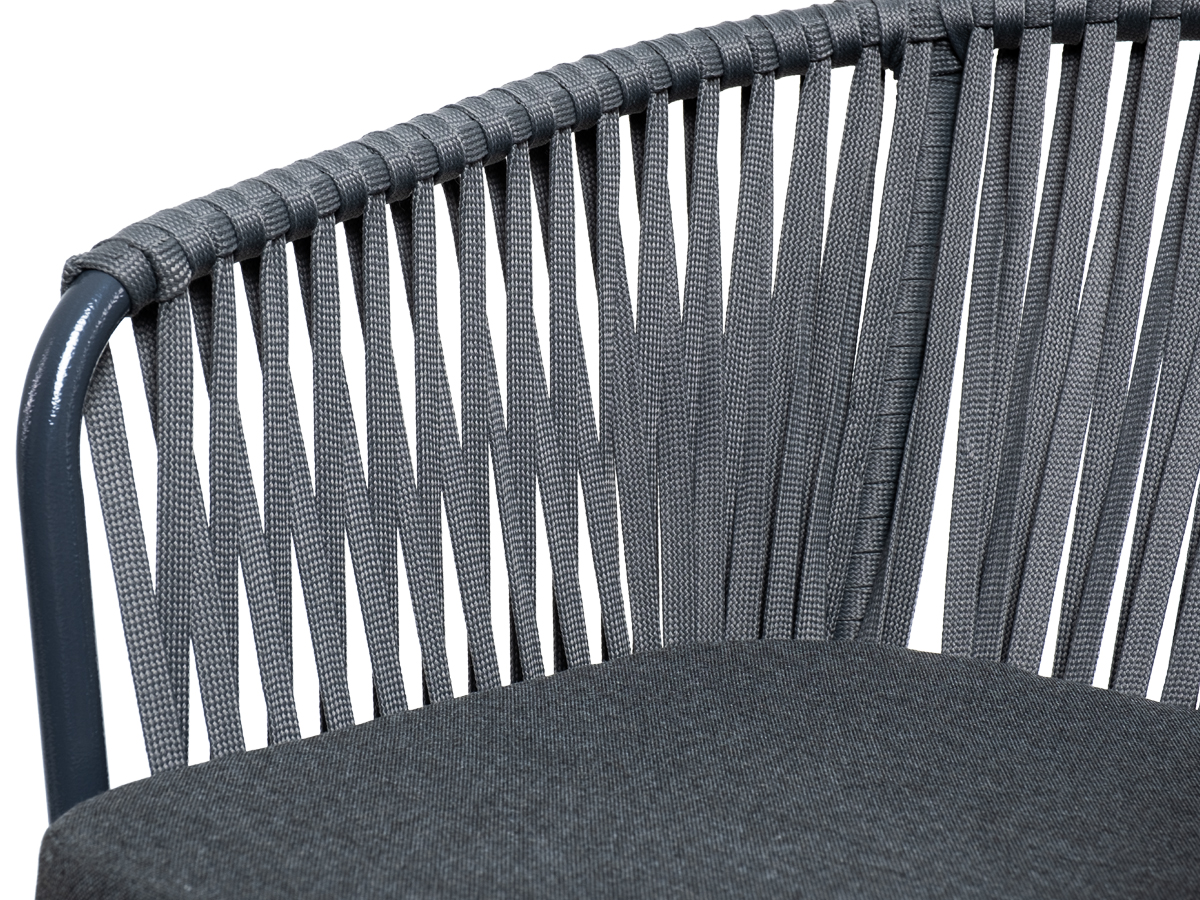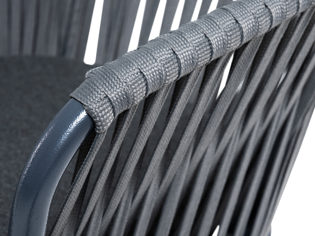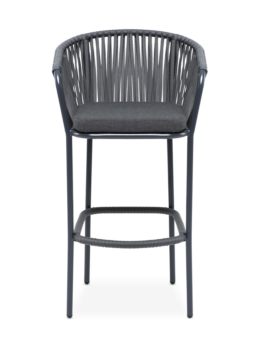 «Бордо» стул барный плетеный из роупа, каркас из стали темно-серый (RAL7024) муар, роуп серый 15мм, ткань темно-серая 027