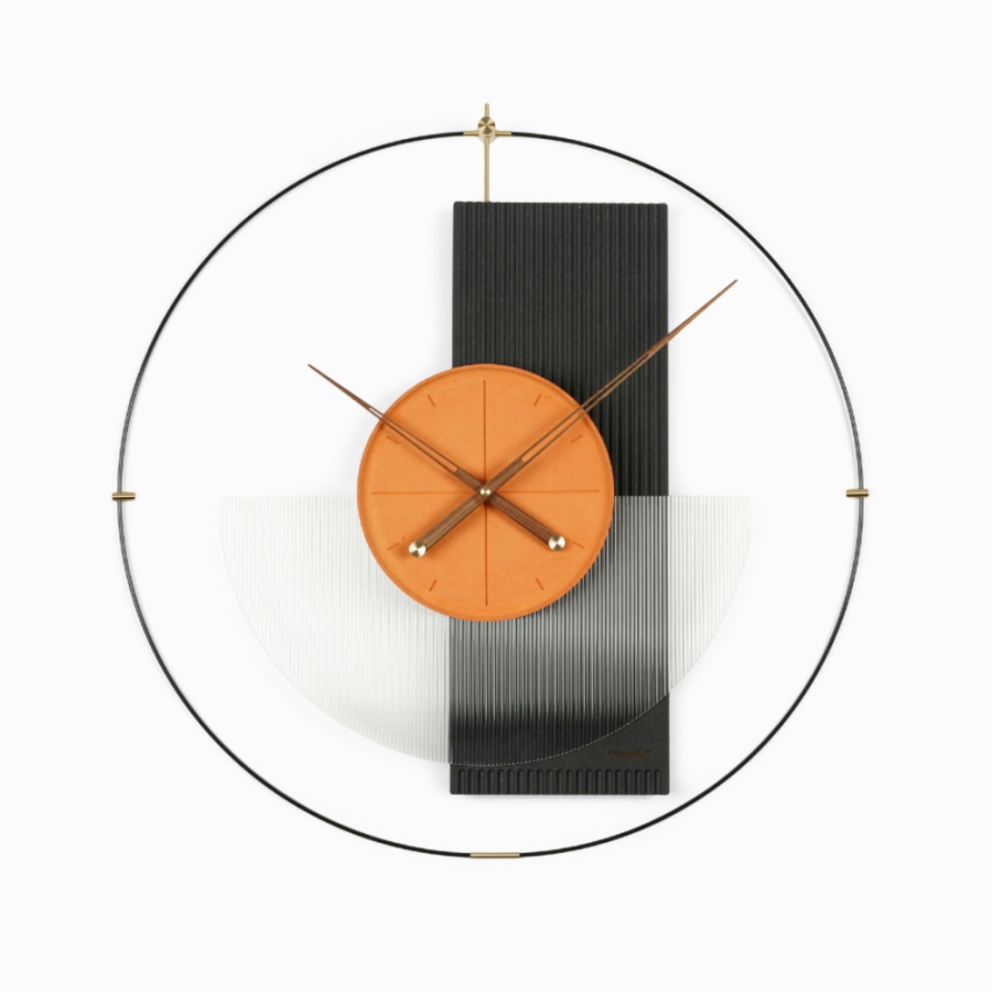 Настенные часы Chrissee с апельсиновой серединой — это яркий акцент в вашем интерьере: Сочетание элементов материала, металла и акрила создает уникальную текстуру и глубину.