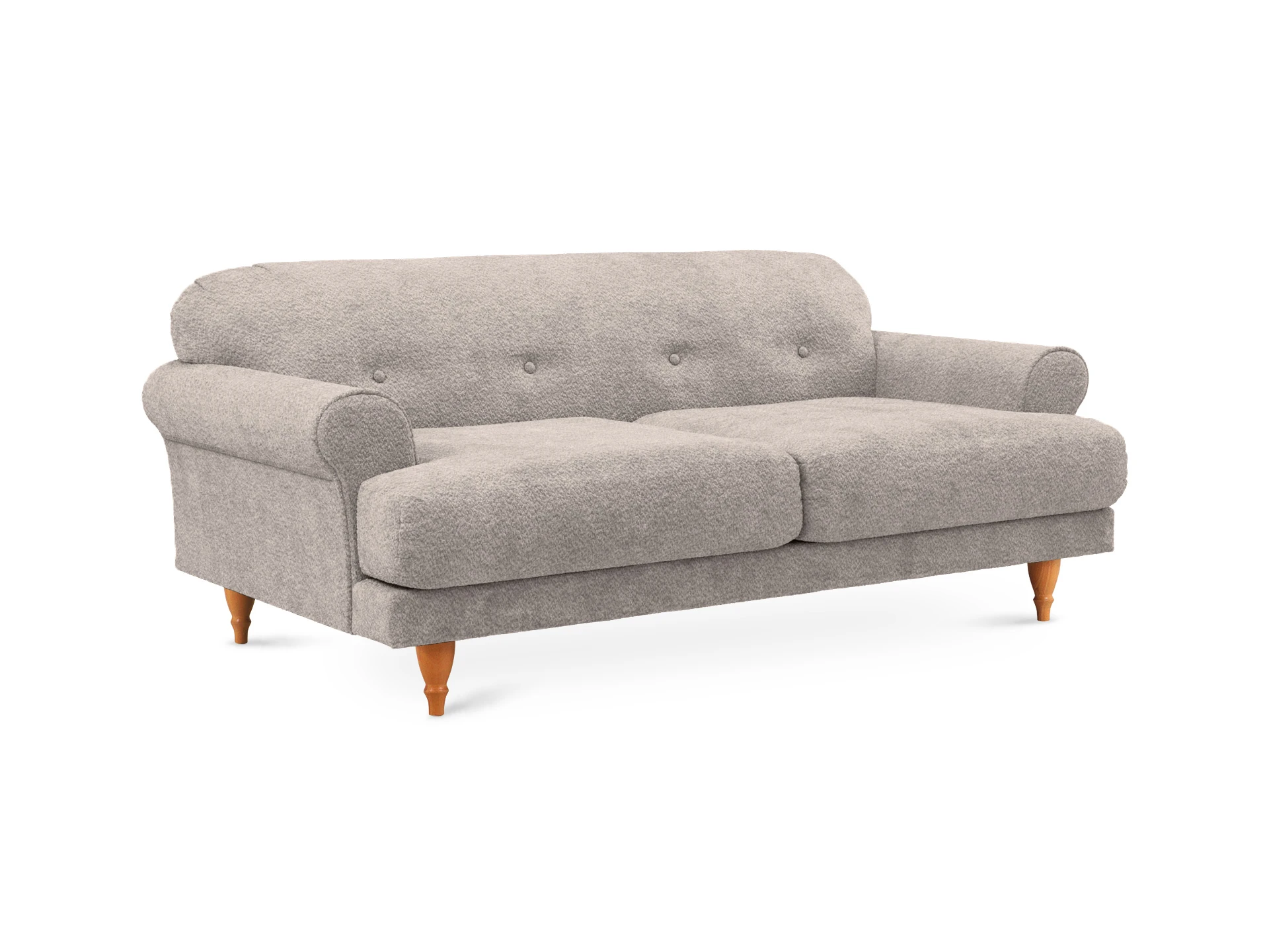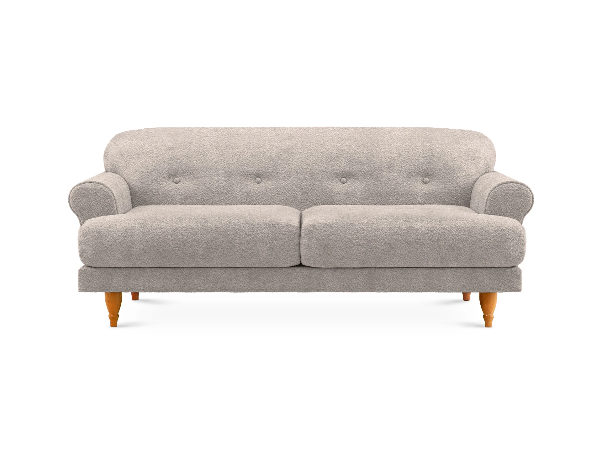 Трехместный диван Italia на ножках из натурального бука — модель классического европейского дизайна. Прямоугольное сиденье, образованное двумя подушками, обеспечивает комфортную посадку. Спинка с закругленными краями делает изделие гармоничным и плавным. Деревянные круглые ножки с фигурной обработкой создают ощущение невесомости и легкости, диван словно «парит» в пространстве. Невысокие подлокотники закруглены наружу, изюминку их формы по достоинству можно оценить при отдыхе лежа. Спинка украшена пуговицами стяжек – черта стилистики ретро.|Сочетание в каркасе деревянного бруса еловых пород с МДФ обеспечивает прочность и основательность. В меру мягкие, эластичные и износоустойчивые наполнители спинки и подушек сиденья – пенополиуретан и синтепон отвечают за качество вашего отдыха в любом положении. Широкий выбор материала обивки по цвету и фактуре. Italia – лаконичный диван с особенной эстетикой. Недаром он носит название страны, которая ассоциируется с искусством, культурой и утонченностью. В зависимости от стиля интерьера и декора диван Italia может выглядеть романтично, строго или изысканно.