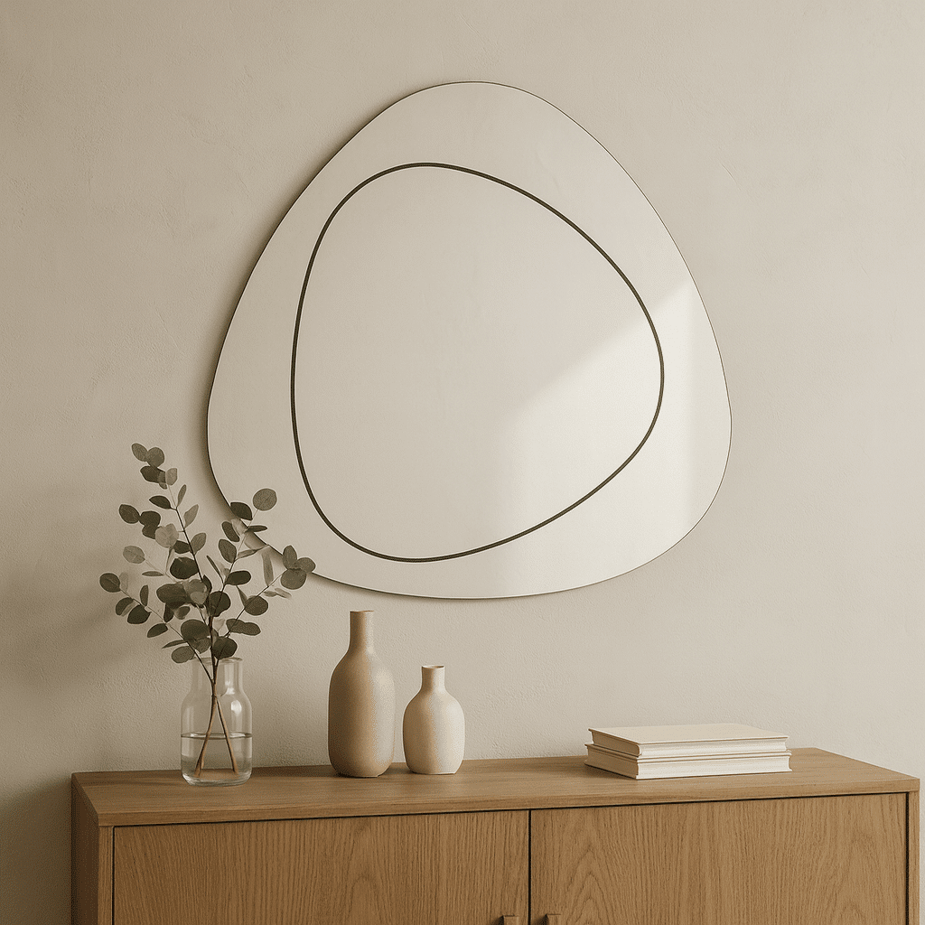 Для современных интерьеров в стиле минимализм, mid-century, Japandi, арт-деко. Зеркало подчеркнёт индивидуальность пространства, будь то гостиная, спальня или холл, добавив в него лёгкость, свет и дизайнерский характер.