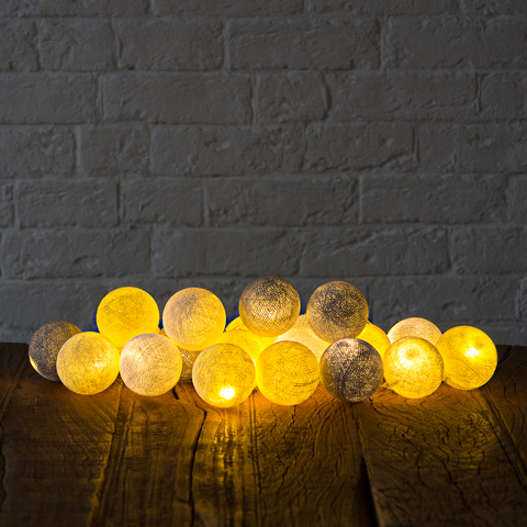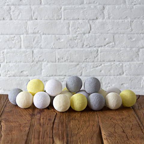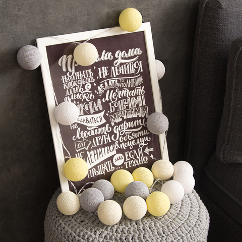 Гирлянда из хлопковых шариков Желто-серая (20 шариков)