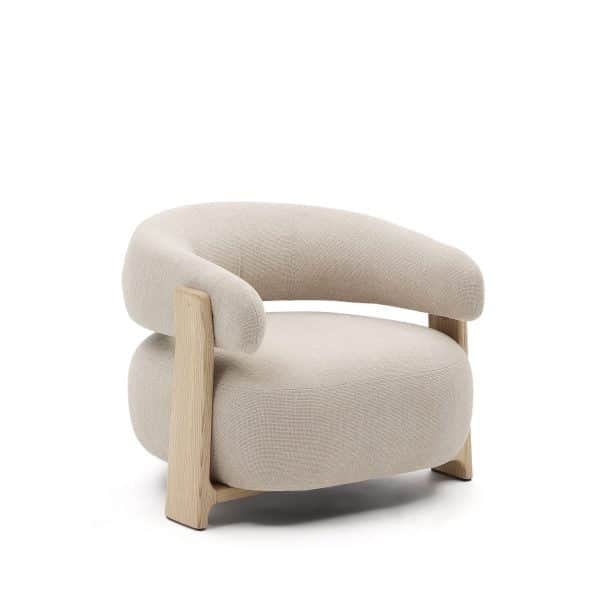 Granite Кресло из бежевого шенилла и массива ясеня в натуральной отделке