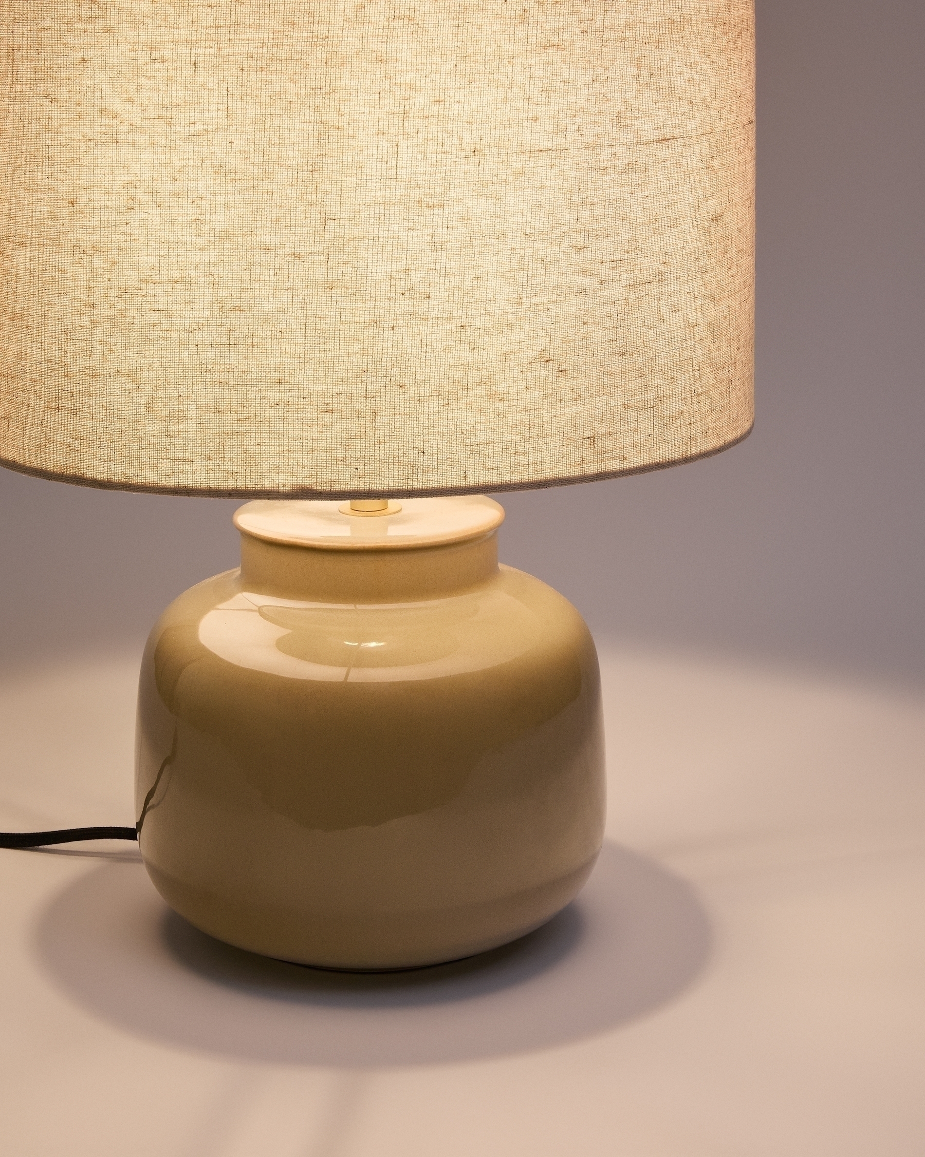 Керамическая настольная лампа Tay зеленая — бежевый лен