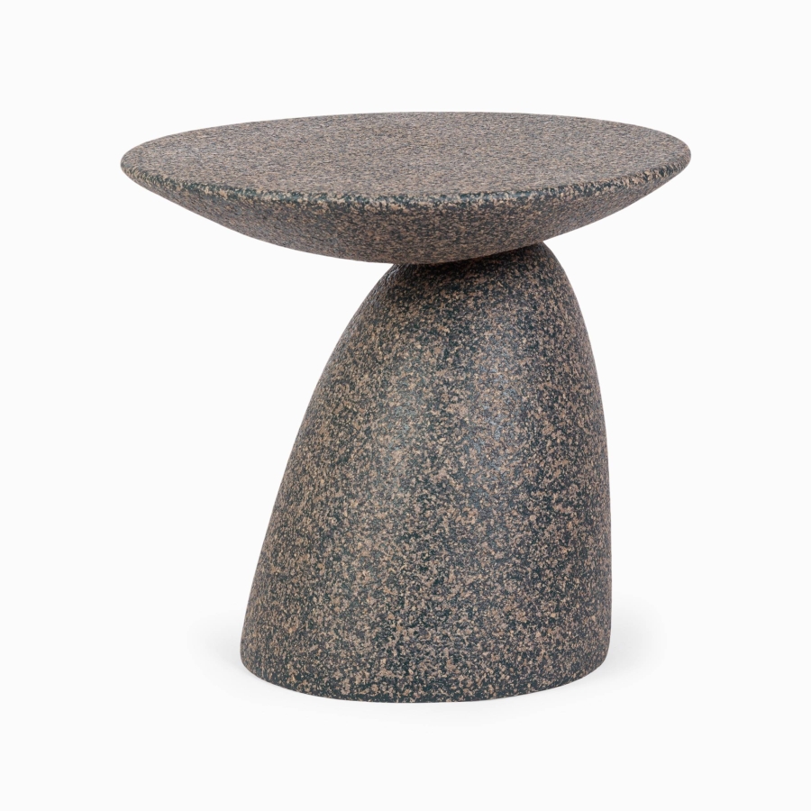 Стол выполнен в форме камня, что придает ему необычный и привлекательный вид, словно он был создан самой природой.