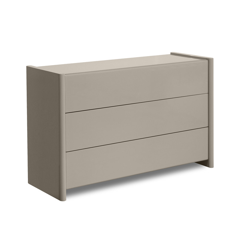 Комод выполнен из высококачественного МДФ стандарта Е1, сочетает в себе прочность и элегантность. Его гладкая поверхность, покрытая полиуретановым глянцевым лаком светло-бежевого оттенка, притягивает взгляд.