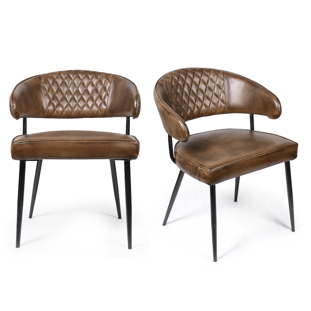 Изысканный стул, в котором современный минимализм встречается с продуманной эргономикой. Конусообразные металлические ножки создают ощущение легкости и устойчивости, а насыщенный коричневый цвет кожаной обивки добавляет интерьеру спокойствия и стиля. Спинка с боковой поддержкой обеспечивает комфортное положение спины даже при длительном сидении, а дополнительная набивка сиденья гарантирует оптимальную мягкость.