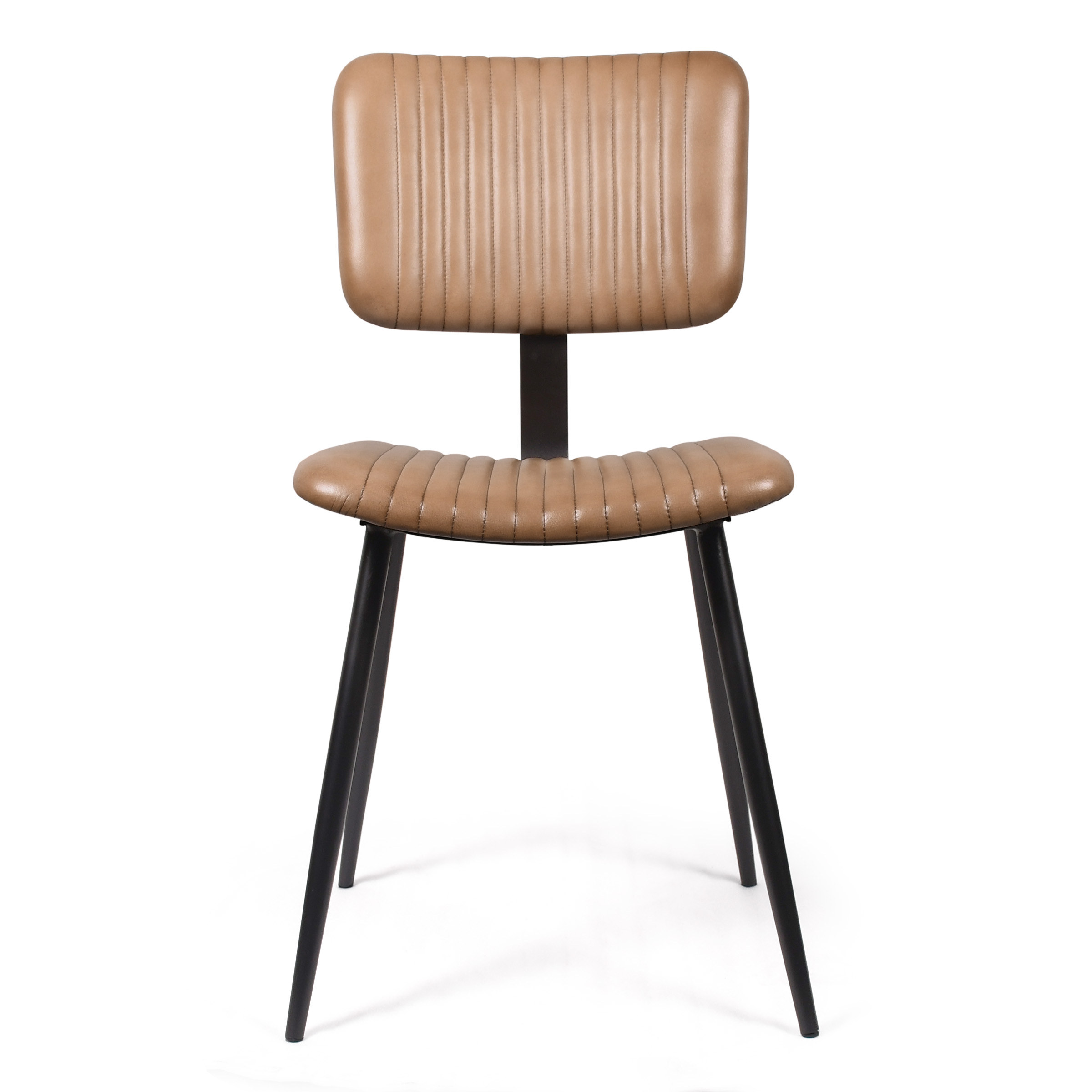 Изысканный стул, в котором сдержанность линий подчеркивается контрастом тёмного каркаса и светлой обивки. Утончённые металлические ножки чёрного цвета создают графичный силуэт, а кремовая кожа сиденья и спинки добавляет интерьеру теплоты и лёгкости. Горизонтальная стяжка не только укрепляет конструкцию, но и служит стильным декоративным акцентом, завершая лаконичный дизайн.