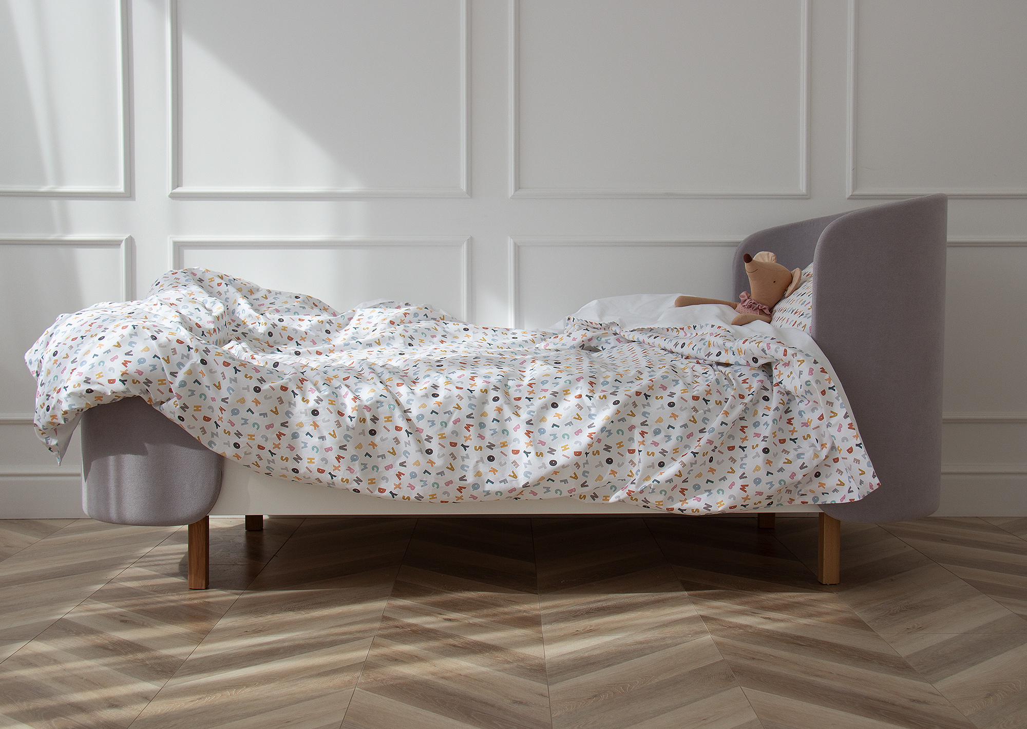 Комплект постельного белья «Разноцветные буквы» (белый, сатин)