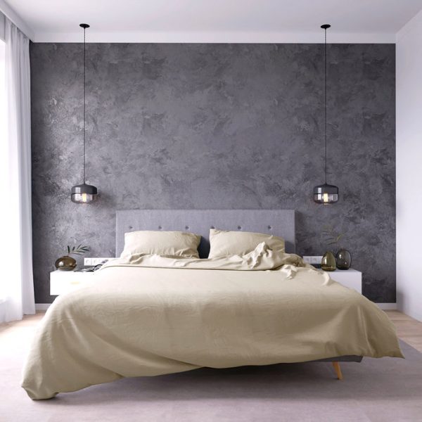 Комплект постельного белья евро с простыней на резинке 160х200 Кремовый