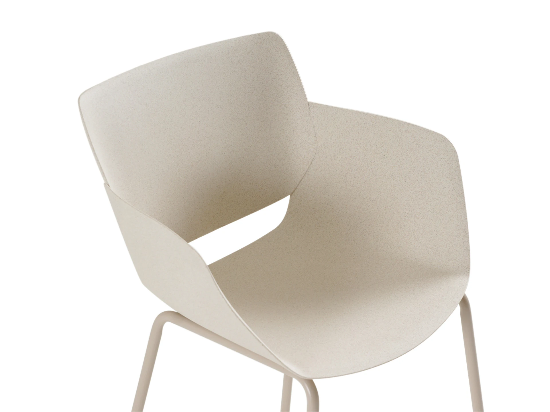 Материал сиденья и спинки — пластик в цвете мультиколор (на светло-бежевом цвете множество вкраплений разного оттенка коричневого цвета), благодаря ему стул прекрасно комбинируется с различными стилевыми решениями.