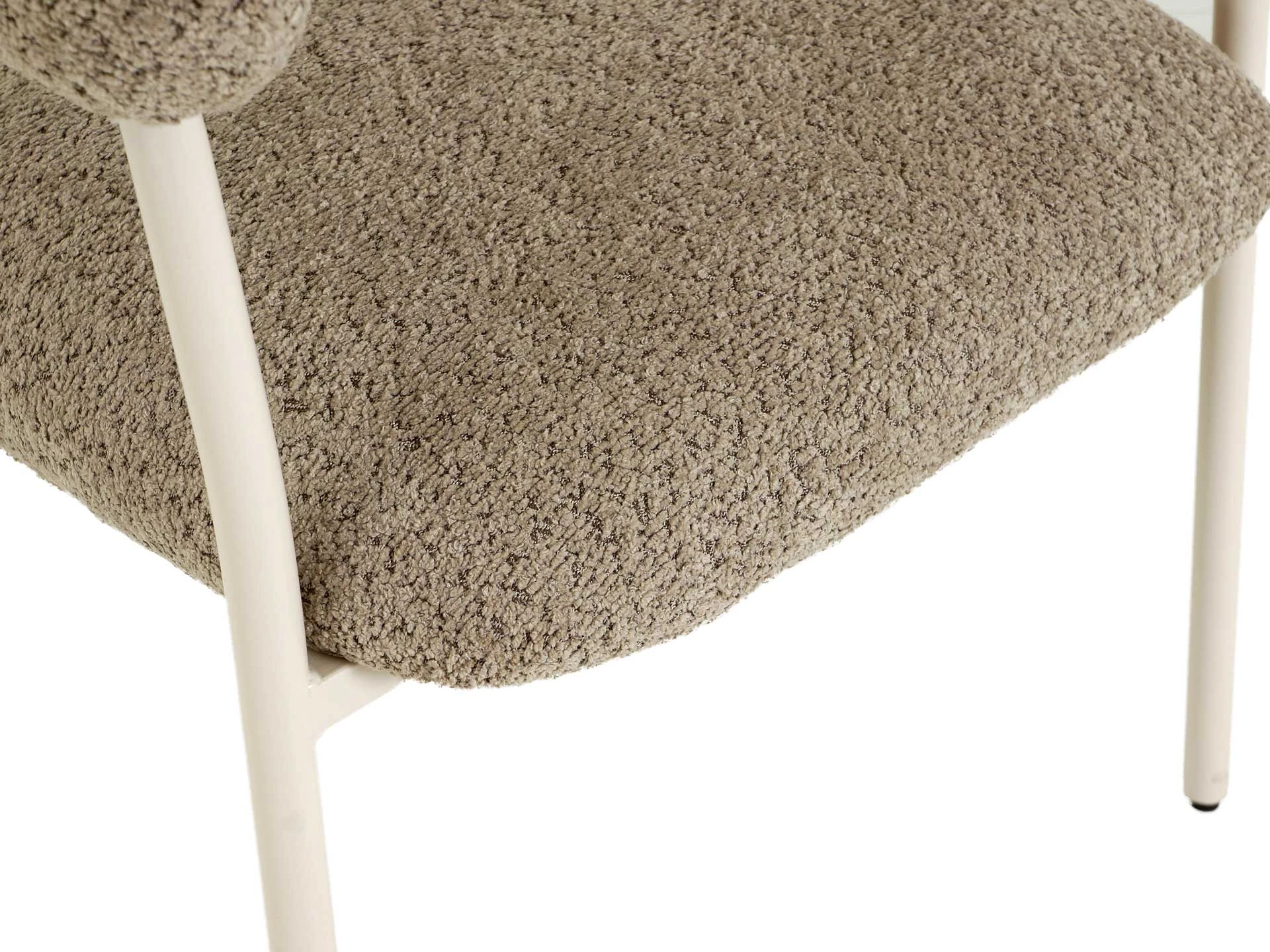 Материал обивки — искусственный мех, материал ножек — металл с кремовым порошковым покрытием. На ножках предусмотрены специальные подпятники, которые предотвращают скольжение и повреждения напольного покрытия.