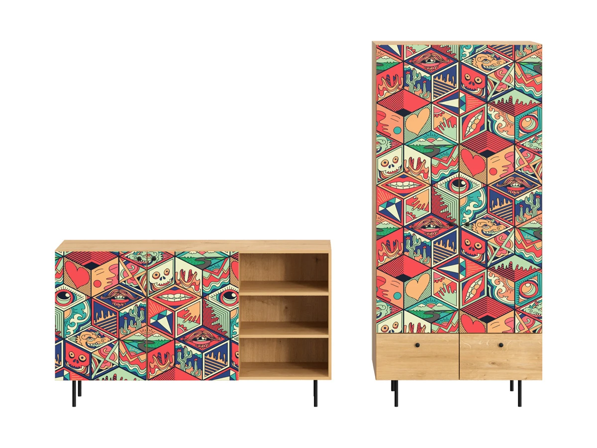 Их можно использовать в качестве систем хранения, элементов для зонирования, фокусных точек. В дизайне ярко выражена доминанта прямых форм, графичности, лаконичных линий и элегантного исполнения. Что даёт пространству ощущение размеренности, сбалансированности, упорядоченности. Подходят интерьерам как с нейтральной базой, так и локациям с интенсивными цветовыми блоками. Индивидуальности добавят модели с оригинальными паттернами на фасадах. Предметы коллекции Frida гармонично впишутся в эклектичные и стилизованные интерьеры.