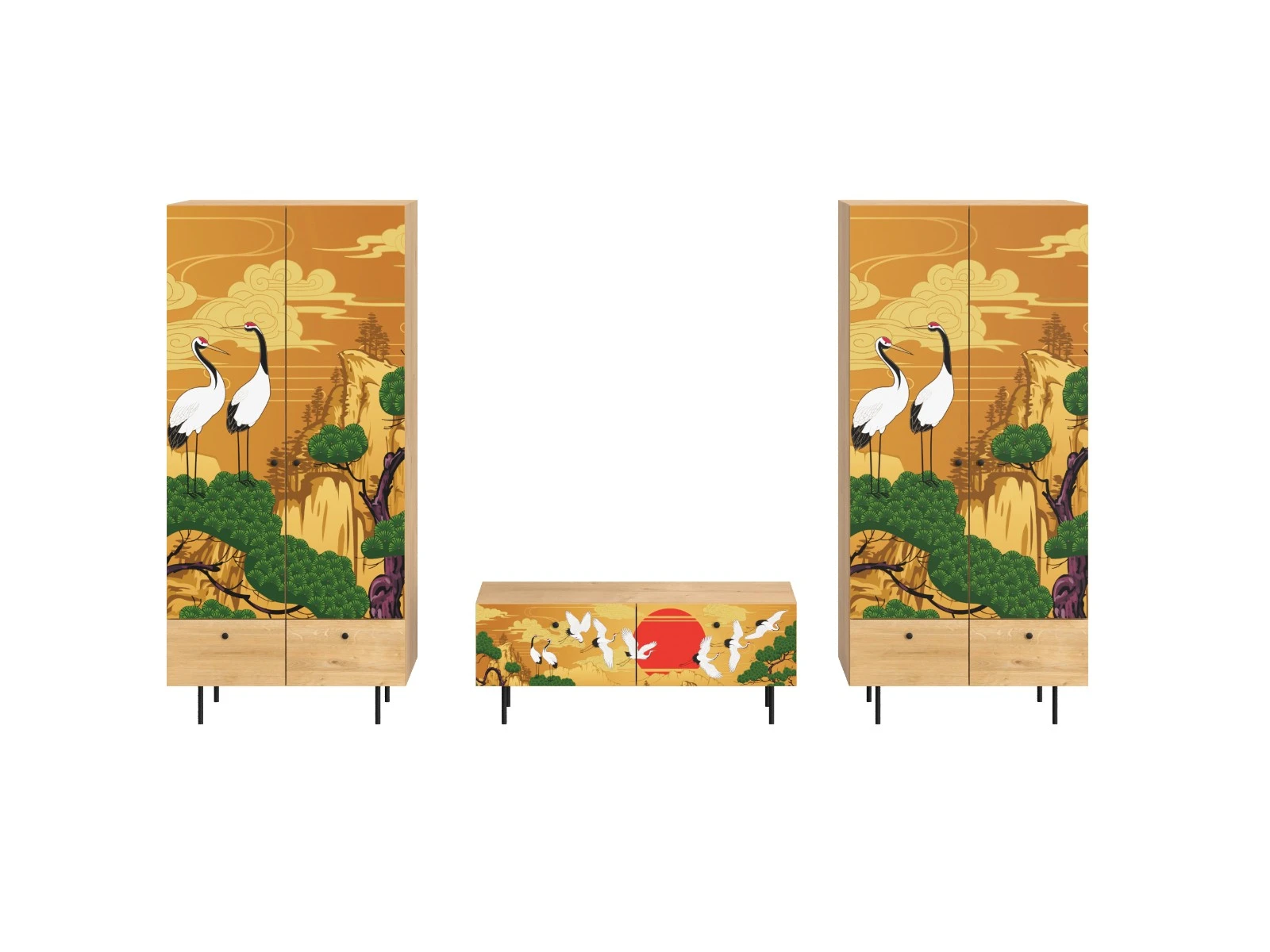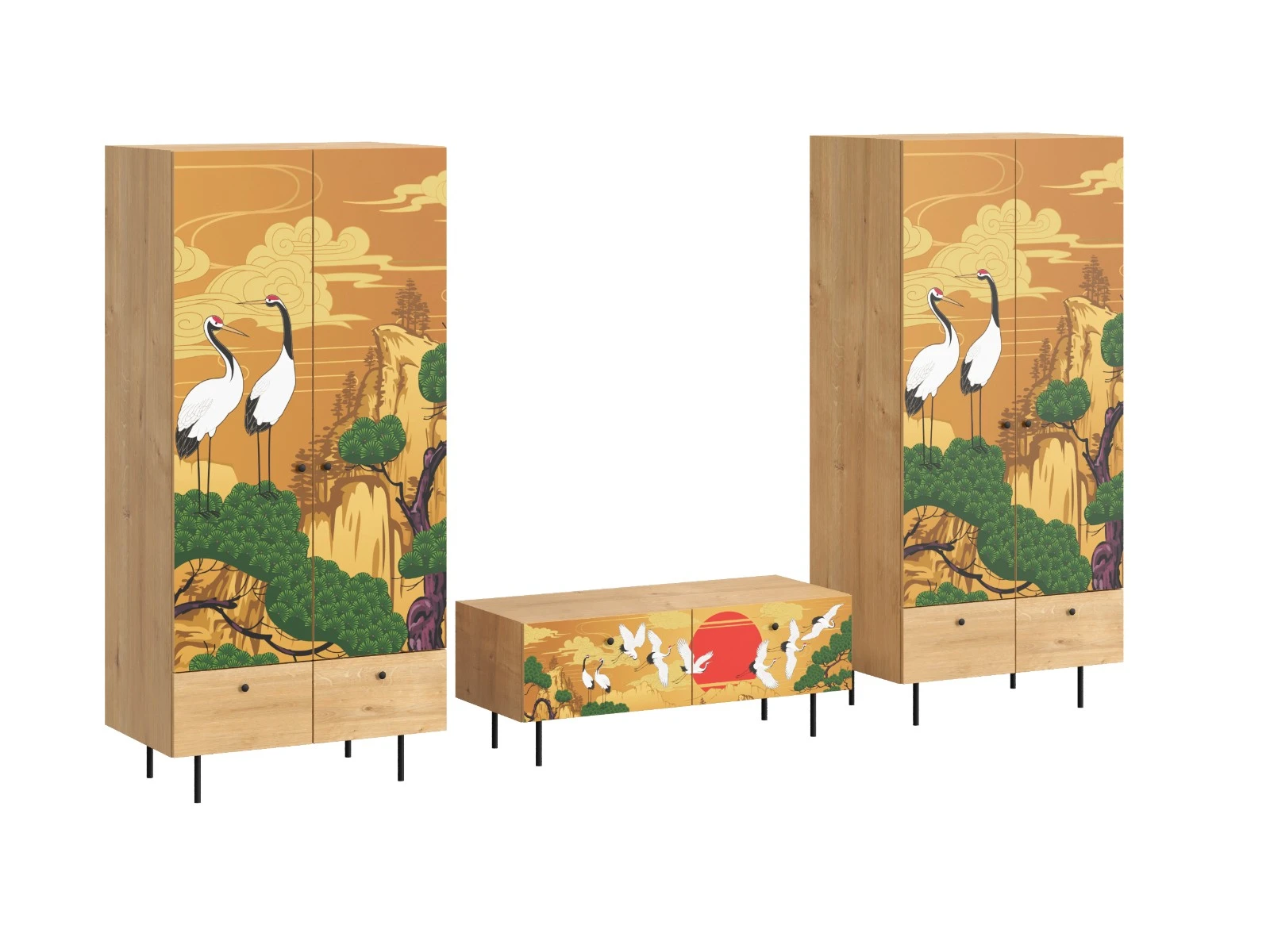 Корпусная мебель, с которой можно составить множество решений для гостиной, детской, кухни, спальни, прихожей, рабочей зоны. Комоды, шкафы, тумбы, столы, витрины, полки, серванты характеризуются универсальностью, многозадачностью, надёжными устойчивыми конструкциями. Имеют выразительный внешний вид, вдохновленный направлением ретро. Смотрятся легко и воздушно за счет деревянных ножек, минимального количества декоративных элементов, спокойных природных оттенков.
