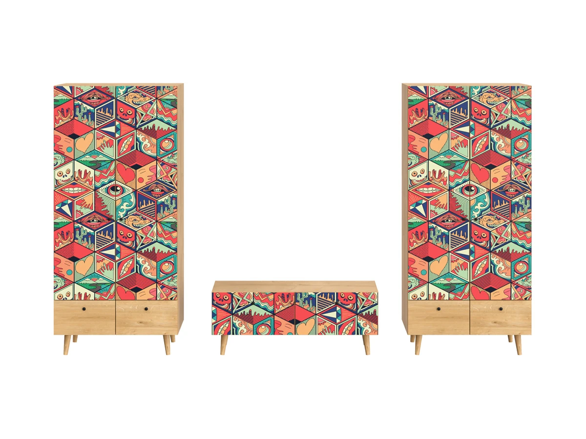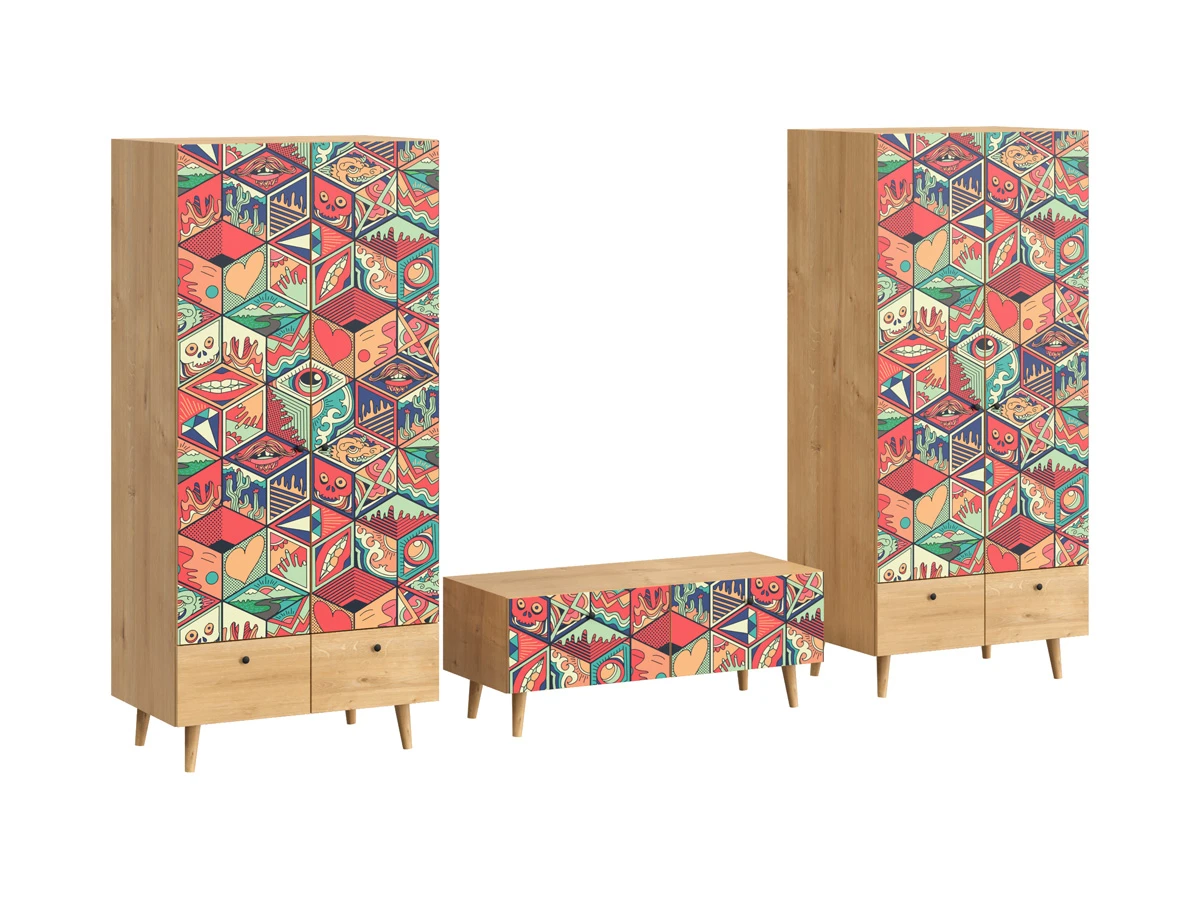 Их можно использовать в качестве систем хранения, элементов для зонирования, фокусных точек. В дизайне ярко выражена доминанта прямых форм, графичности, лаконичных линий и элегантного исполнения. Что даёт пространству ощущение размеренности, сбалансированности, упорядоченности. Подходят интерьерам как с нейтральной базой, так и локациям с интенсивными цветовыми блоками. Индивидуальности добавят модели с оригинальными паттернами на фасадах. Предметы коллекции Frida гармонично впишутся в эклектичные и стилизованные интерьеры.