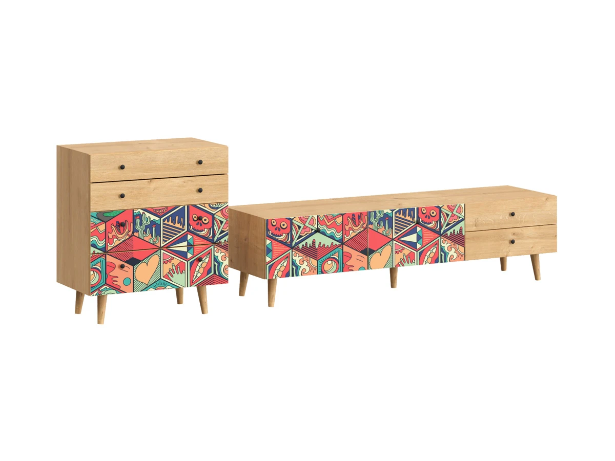 Их можно использовать в качестве систем хранения, элементов для зонирования, фокусных точек. В дизайне ярко выражена доминанта прямых форм, графичности, лаконичных линий и элегантного исполнения. Что даёт пространству ощущение размеренности, сбалансированности, упорядоченности. Подходят интерьерам как с нейтральной базой, так и локациям с интенсивными цветовыми блоками. Индивидуальности добавят модели с оригинальными паттернами на фасадах. Предметы коллекции Frida гармонично впишутся в эклектичные и стилизованные интерьеры.