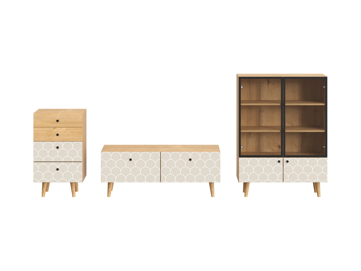 Корпусная мебель, с которой можно составить множество решений для гостиной, детской, кухни, спальни, прихожей, рабочей зоны. Комоды, шкафы, тумбы, столы, витрины, полки, серванты характеризуются универсальностью, многозадачностью, надёжными устойчивыми конструкциями. Имеют выразительный внешний вид, вдохновленный направлением ретро. Смотрятся легко и воздушно за счет деревянных ножек, минимального количества декоративных элементов, спокойных природных оттенков.