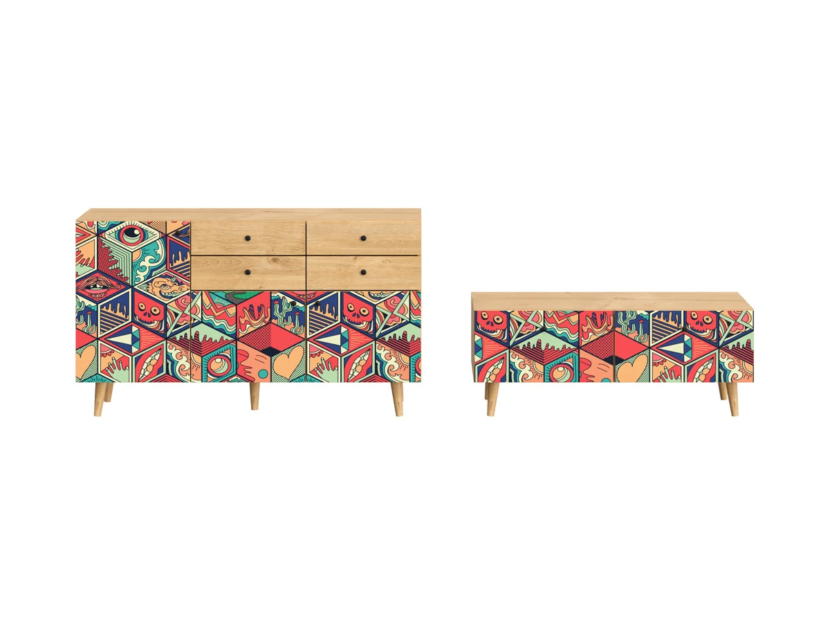 Их можно использовать в качестве систем хранения, элементов для зонирования, фокусных точек. В дизайне ярко выражена доминанта прямых форм, графичности, лаконичных линий и элегантного исполнения. Что даёт пространству ощущение размеренности, сбалансированности, упорядоченности. Подходят интерьерам как с нейтральной базой, так и локациям с интенсивными цветовыми блоками. Индивидуальности добавят модели с оригинальными паттернами на фасадах. Предметы коллекции Frida гармонично впишутся в эклектичные и стилизованные интерьеры.
