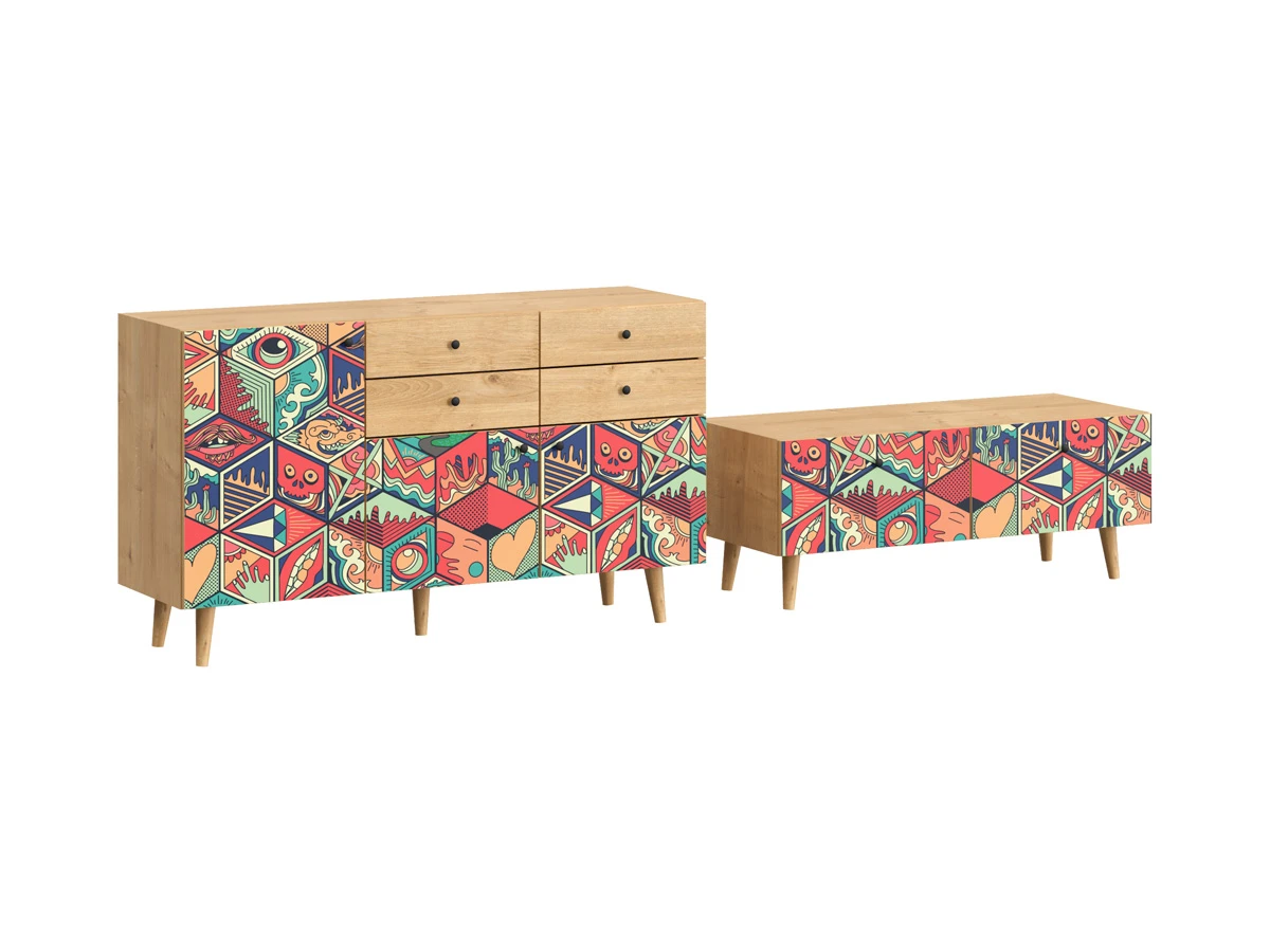 Корпусная мебель, с которой можно составить множество решений для гостиной, детской, кухни, спальни, прихожей, рабочей зоны. Комоды, шкафы, тумбы, столы, витрины, полки, серванты характеризуются универсальностью, многозадачностью, надёжными устойчивыми конструкциями. Имеют выразительный внешний вид, вдохновленный направлением ретро. Смотрятся легко и воздушно за счет деревянных ножек, минимального количества декоративных элементов, спокойных природных оттенков.