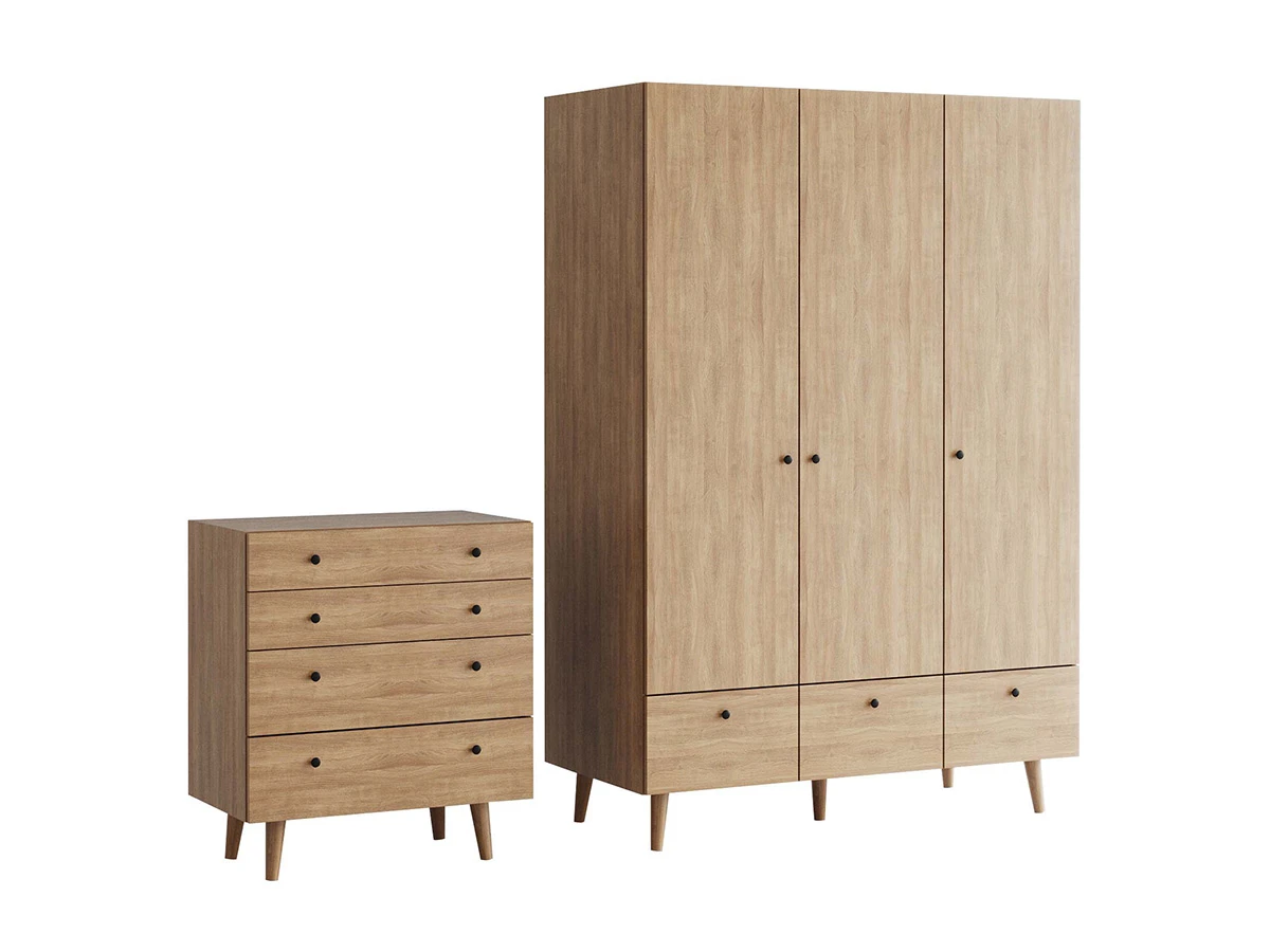 Корпусная мебель, с которой можно составить множество решений для гостиной, детской, кухни, спальни, прихожей, рабочей зоны. Комоды, шкафы, тумбы, столы, витрины, полки, серванты характеризуются универсальностью, многозадачностью, надёжными устойчивыми конструкциями. Имеют выразительный внешний вид, вдохновленный направлением ретро. Смотрятся легко и воздушно за счет деревянных ножек, минимального количества декоративных элементов, спокойных природных оттенков.