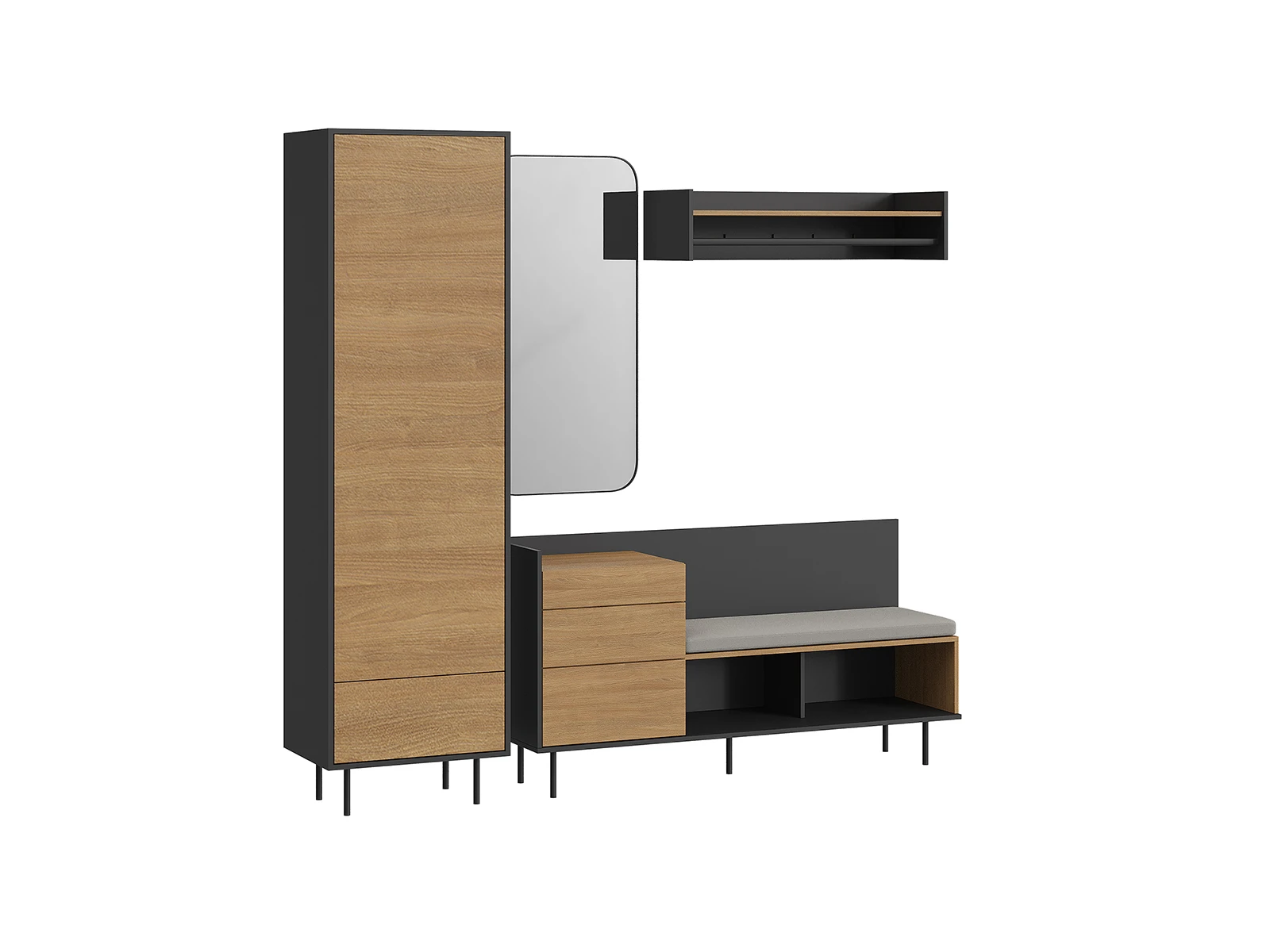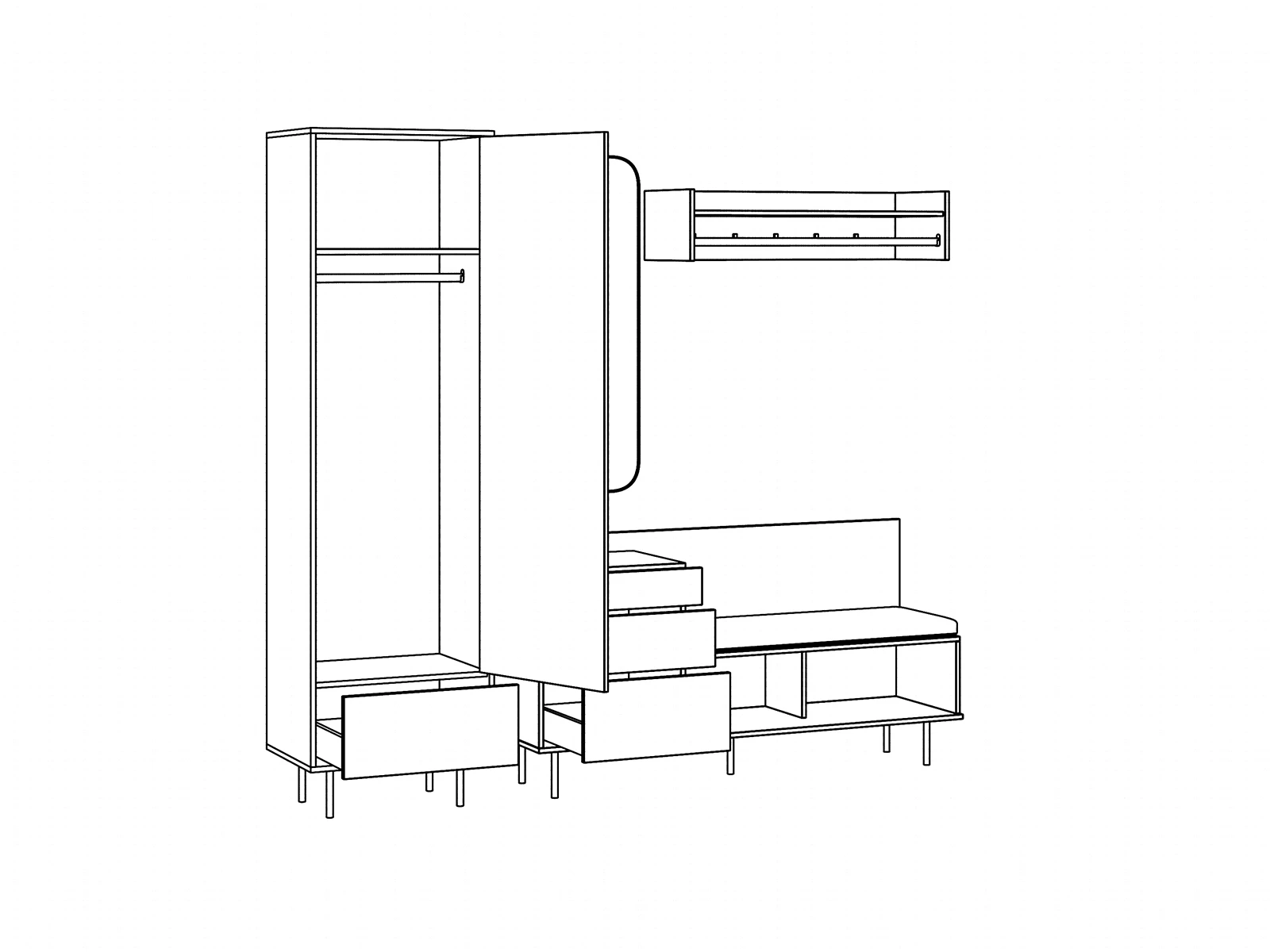 Добавить в отслеживание ценВ нижней части шкафа выдвижной ящик на скрытых направляющих. Отделение за дверью укомплектовано как выдвижной штангой, которая крепится на верхнюю несъёмную полку, так и тремя съёмными полками.