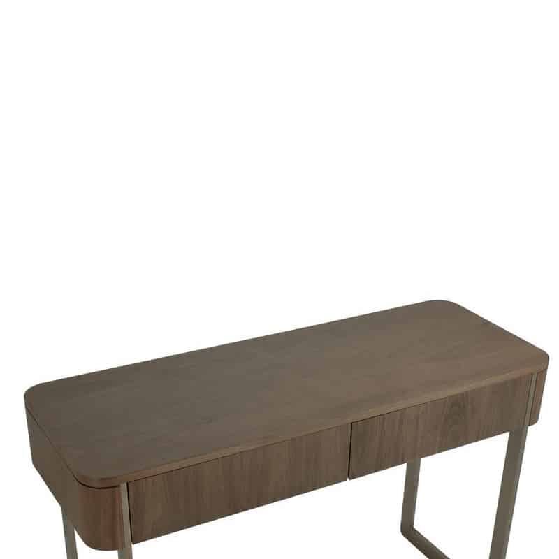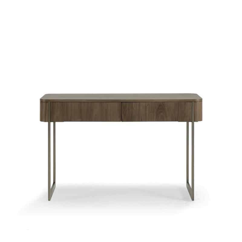 Выполнена в отделке шпоном американского ореха, оснащена двумя выдвижными ящиками.