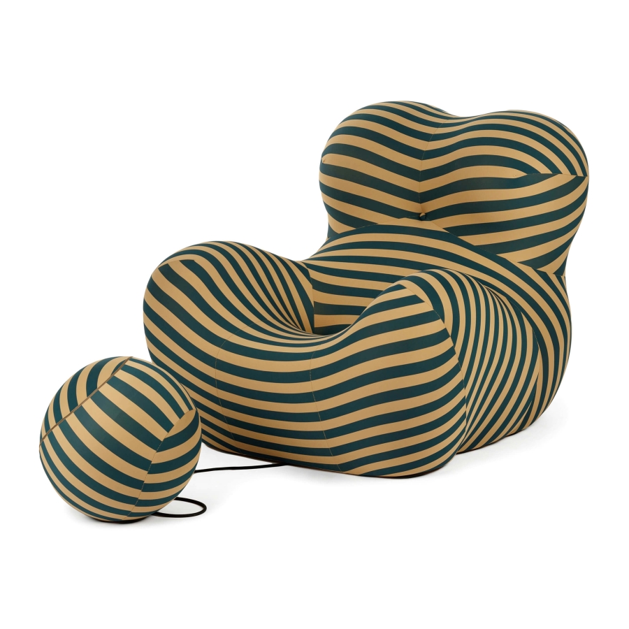 Модель отличается пышными, органичными формами, напоминающимичеловеческую фигуру. Кресло полностью обито эластичной тканью с ярким идинамичным полосатым принтом. Контрастные полосы тёмно-синего и бежевогоцветов создают оптическую иллюзию и подчёркивают плавные изгибы кресла.Особенностью модели является оттоманка в виде шара, соединённая с кресломтонким шнуром. Эта деталь символизирует узы и связи, превращая кресло Bo в концептуальный арт-объект. Гарантия: 1 год. Цвет: разноцветный,разноцветный, Глубина (см): 121, Высота (см): 89