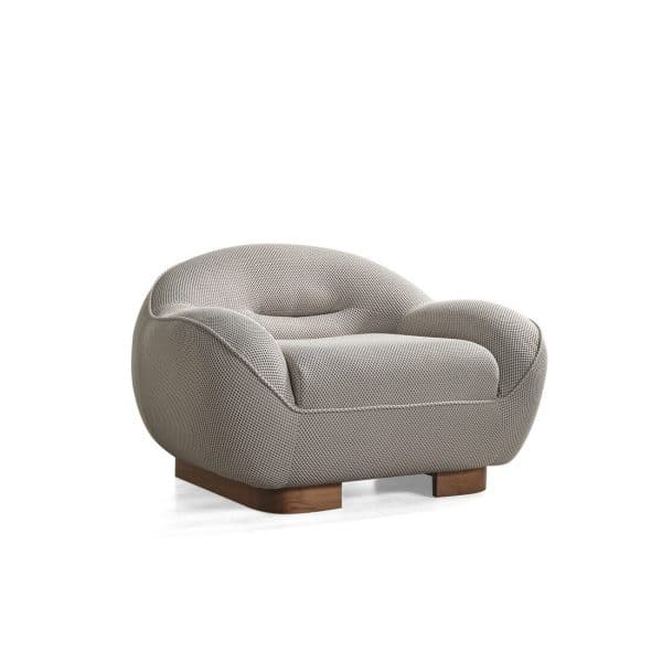 Каркас кресла изготовлен из высококачественной фанеры и массива дерева. В наполнении дивана использованы европейские наполнители. Кресло имеет необычную каплевидную современную форму. Все элементы имеют изящный кантик вместо открытого шва. Дизайнерские ножки выполнены из массива дерева.