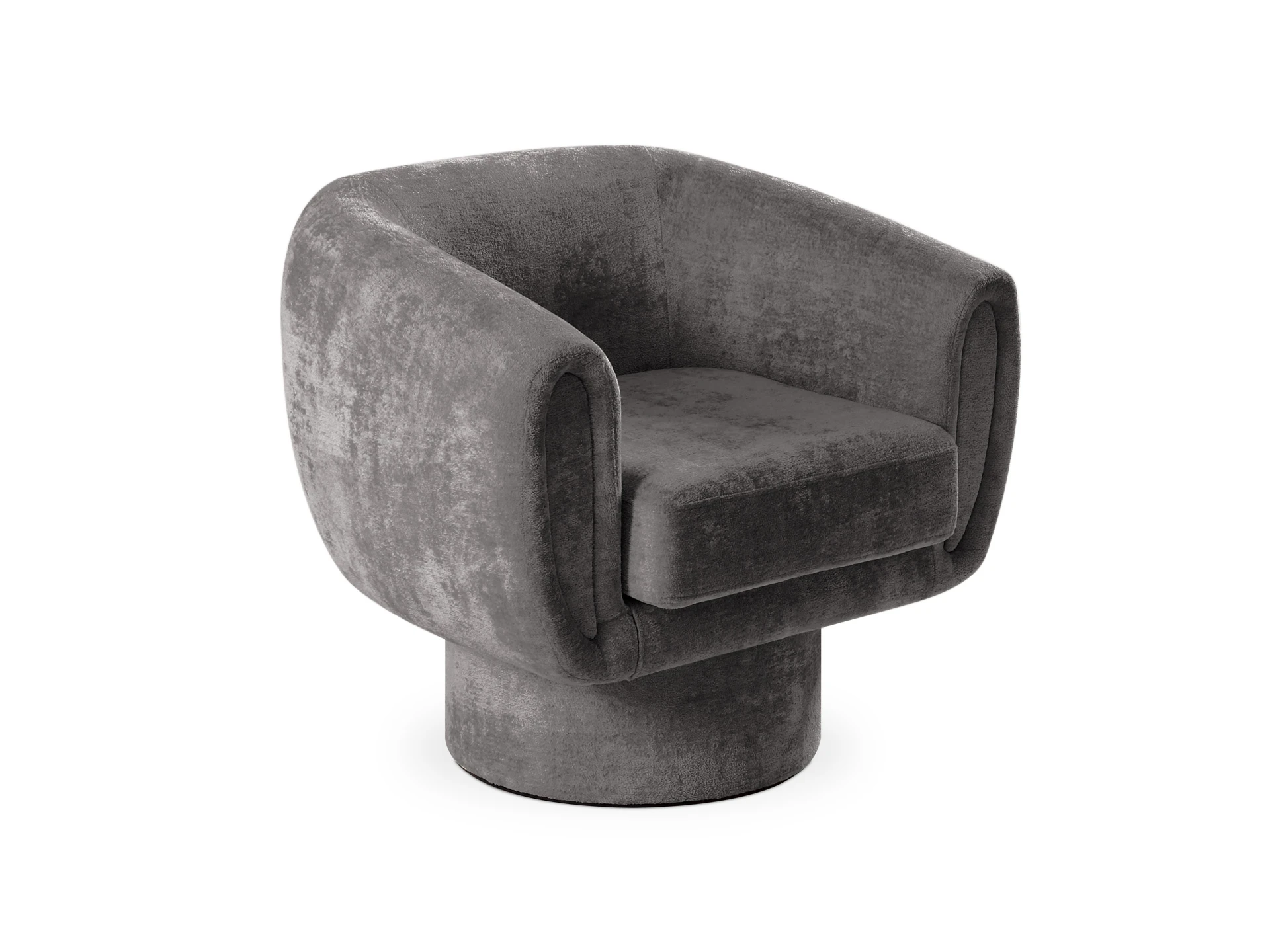 Корпус кресла установлен на основание цилиндрической формы, выполненное в 2-х вариантах: облицовка тканью или шпоном в трех цветах (дуб натуральный, дуб черный, орех).