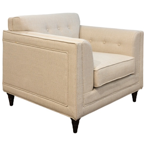 Каркас — натуральный массив дерева, отделка (ножки) — натуральный шпон махагона, обивка — кремовая рогожка.