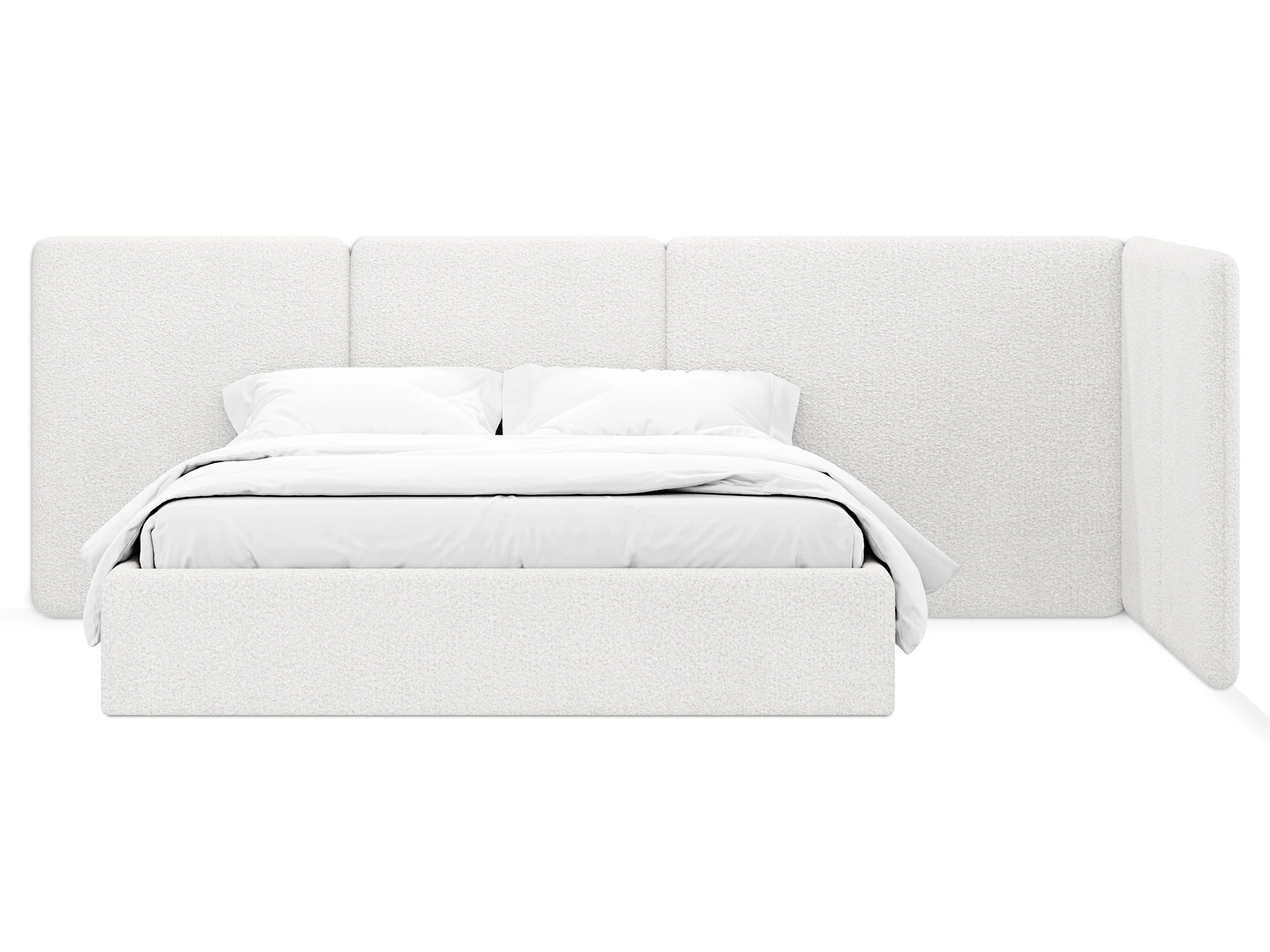 Модель рассчитана на стандартное спальное место 1600х2000 мм. Мягкое изголовье обеспечивает комфорт при отдыхе сидя (чтение, просмотр видео). Благодаря модульной структуре панелей кровать легко адаптируется под геометрию стены и интерьер, выступая центральным элементом спальни. Подходит для современных жилых пространств.