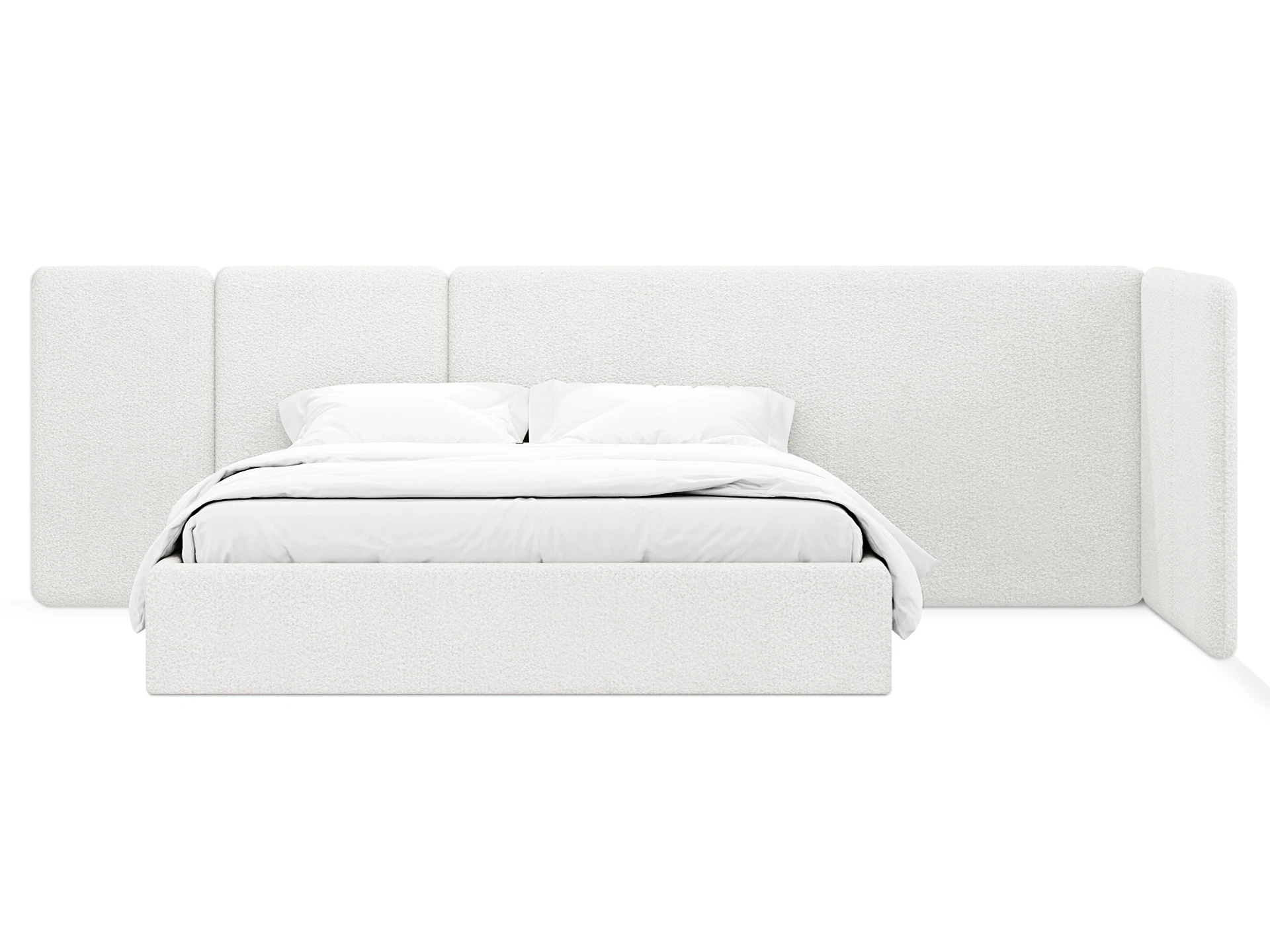 Модель рассчитана на стандартное спальное место 1800х2000 мм. Мягкое изголовье обеспечивает комфорт при отдыхе сидя (чтение, просмотр видео). Благодаря модульной структуре панелей кровать легко адаптируется под геометрию стены и интерьер, выступая центральным элементом спальни. Подходит для современных жилых пространств.