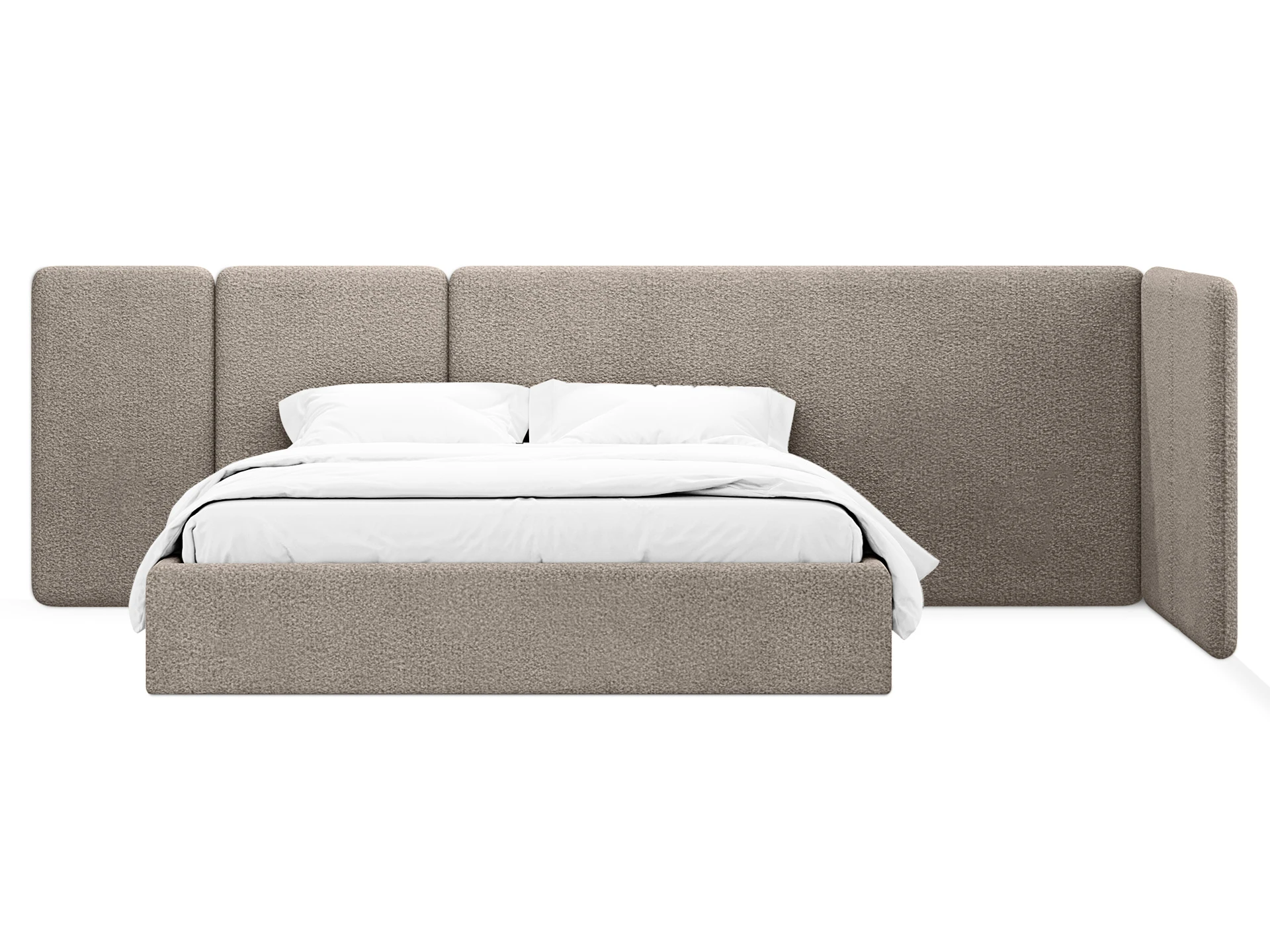 Модель рассчитана на стандартное спальное место 1800х2000 мм. Мягкое изголовье обеспечивает комфорт при отдыхе сидя (чтение, просмотр видео). Благодаря модульной структуре панелей кровать легко адаптируется под геометрию стены и интерьер, выступая центральным элементом спальни. Подходит для современных жилых пространств.