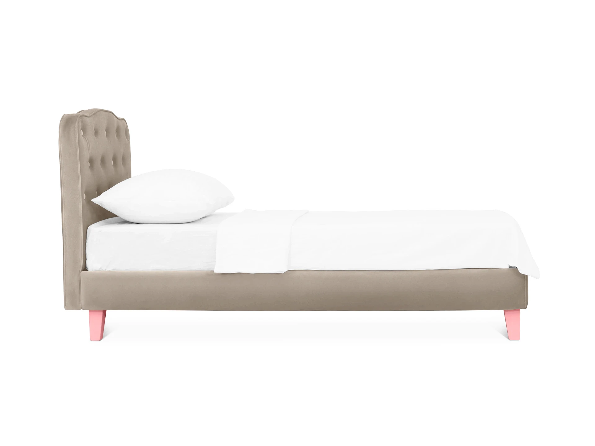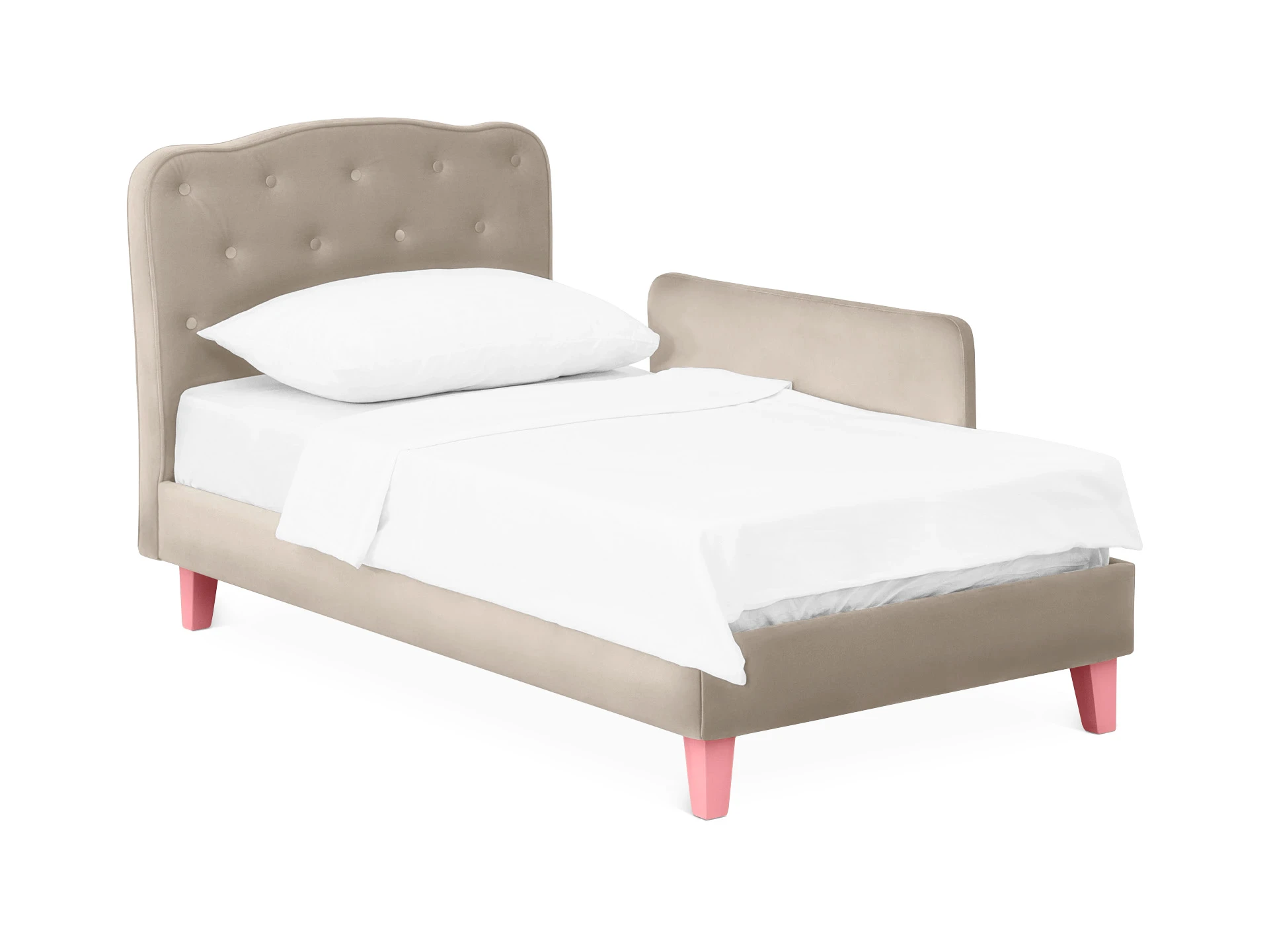 Линейка Candy — кровати для детей с высоким изголовьем и мягкими царгами. Изящное исполнение поможет воссоздать в интерьере картинку из сказки. Комната принцессы или спальня феи — Candy воплотит любую мечту! Воздушная и невесомая благодаря ножкам из массива дерева. Смотрится аккуратно и эстетично. Элегантное фигурное изголовье украшено текстильными пуговицами, напоминающими каретную стяжку «капитоне».