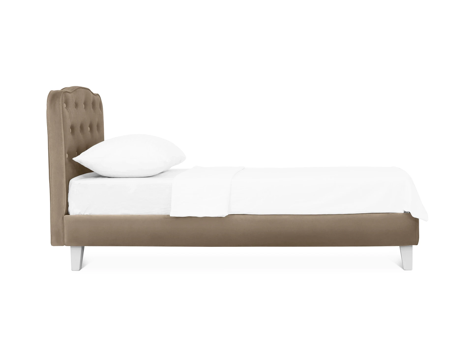 Линейка Candy — кровати для детей с высоким изголовьем и мягкими царгами. Изящное исполнение поможет воссоздать в интерьере картинку из сказки. Комната принцессы или спальня феи — Candy воплотит любую мечту! Воздушная и невесомая благодаря ножкам из массива дерева. Смотрится аккуратно и эстетично. Элегантное фигурное изголовье украшено текстильными пуговицами, напоминающими каретную стяжку «капитоне».