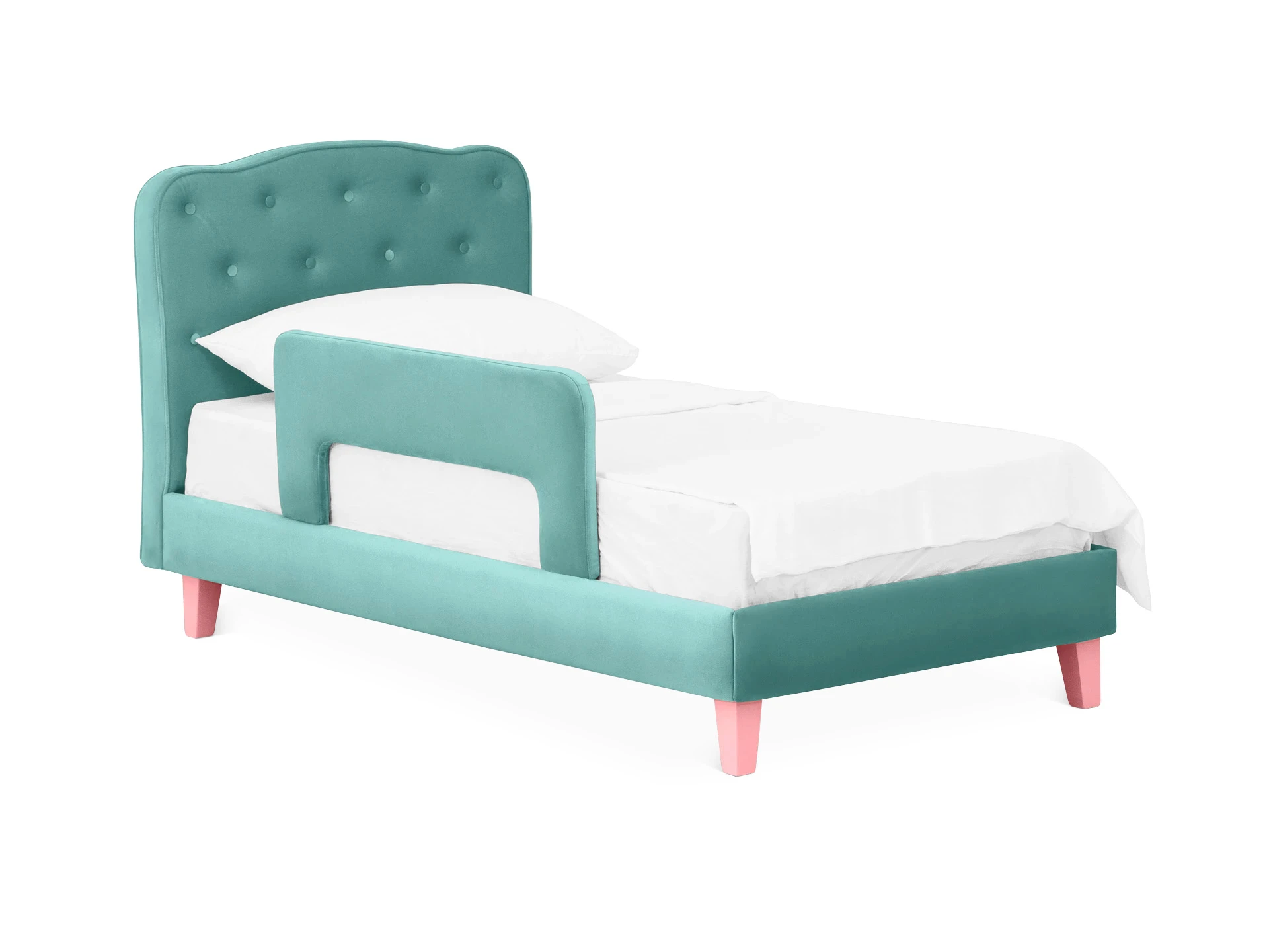 Линейка Candy — кровати для детей с высоким изголовьем и мягкими царгами. Изящное исполнение поможет воссоздать в интерьере картинку из сказки. Комната принцессы или спальня феи — Candy воплотит любую мечту! Воздушная и невесомая благодаря ножкам из массива дерева. Смотрится аккуратно и эстетично. Элегантное фигурное изголовье украшено текстильными пуговицами, напоминающими каретную стяжку «капитоне».