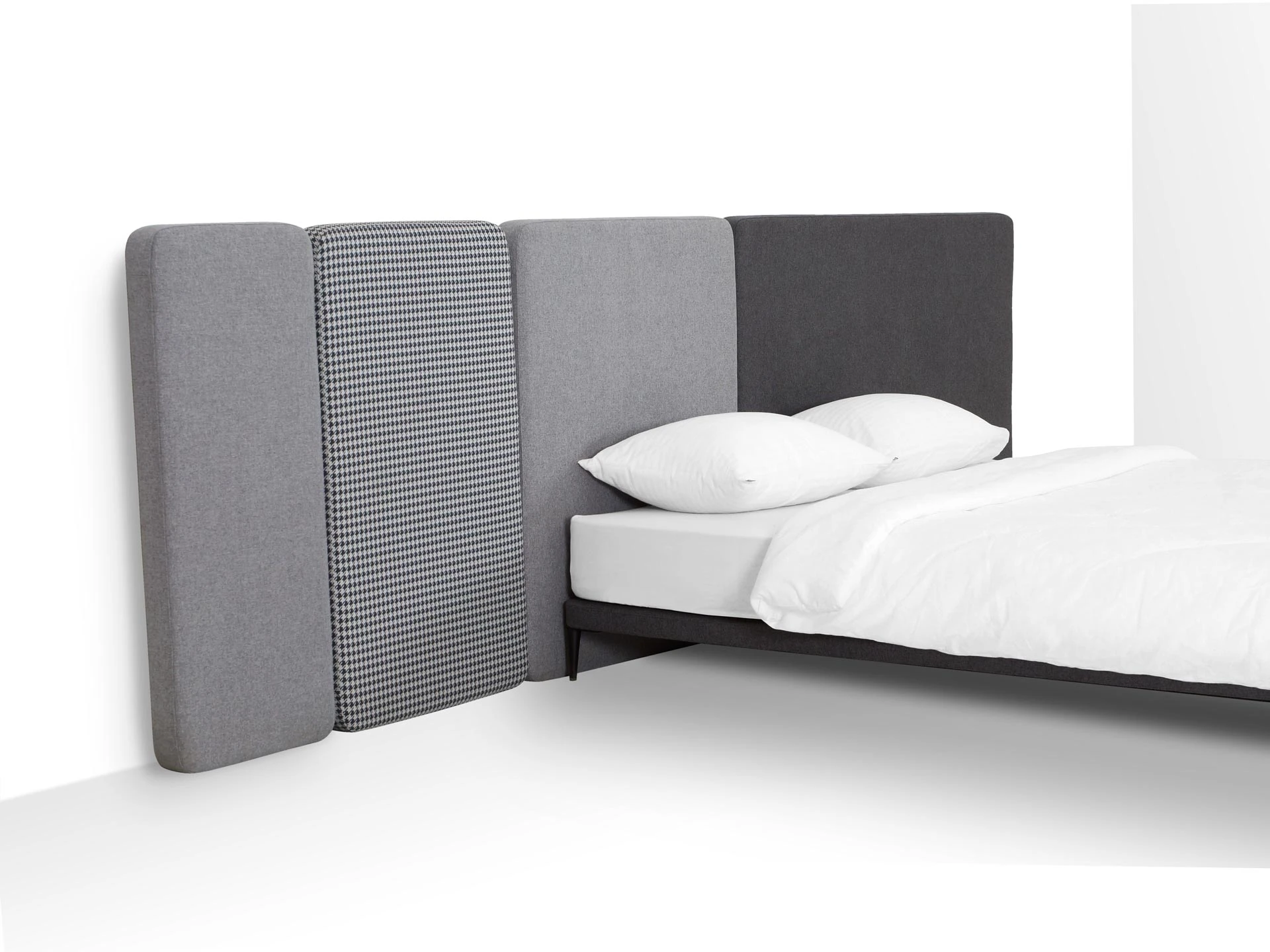 Кровать можно персонализировать при помощи навесных панелей 5 конфигураций. Имеют разную ширину и выполняются в любых цветовых сочетаниях. Крепятся к стене с помощью металлических навесов с регулировкой по высоте. Панели комбинируются по-разному и адаптируются к спальням любых размеров. Можно оформить как традиционное высокое изголовье, так и большой «мягкий уголок». Который сделает вашу территорию идеального сна уютнее, теплее, а также подарит чувство защищенности и расслабления. Кровать Licata органично впишется в пространства разной стилистики от современной классики до минимализма и поможет вам максимально насладиться домашним комфортом.