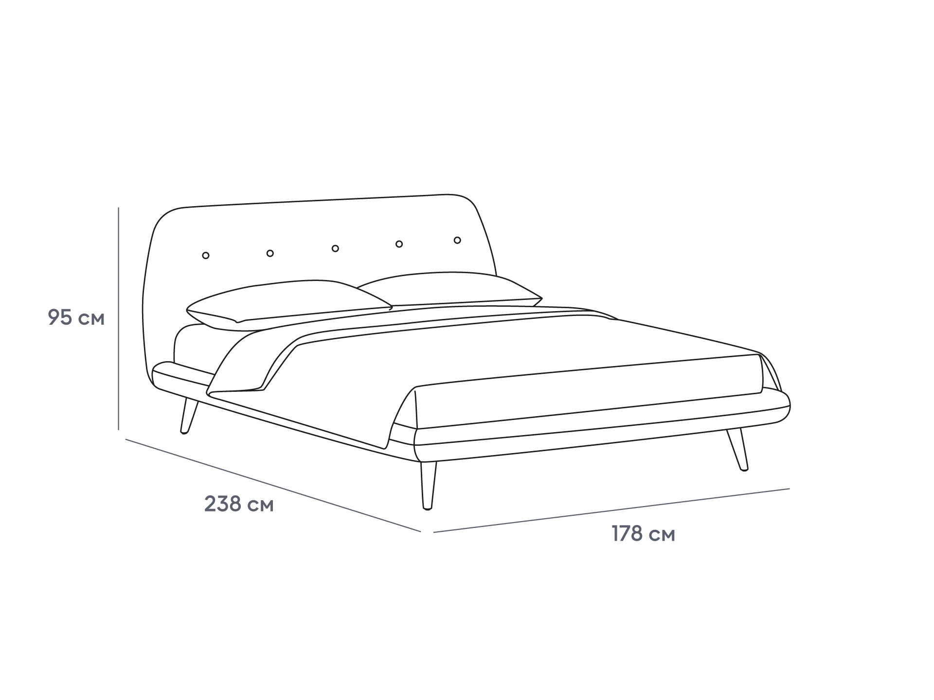Рекомендуемая высота матраса: 160 — 230мм