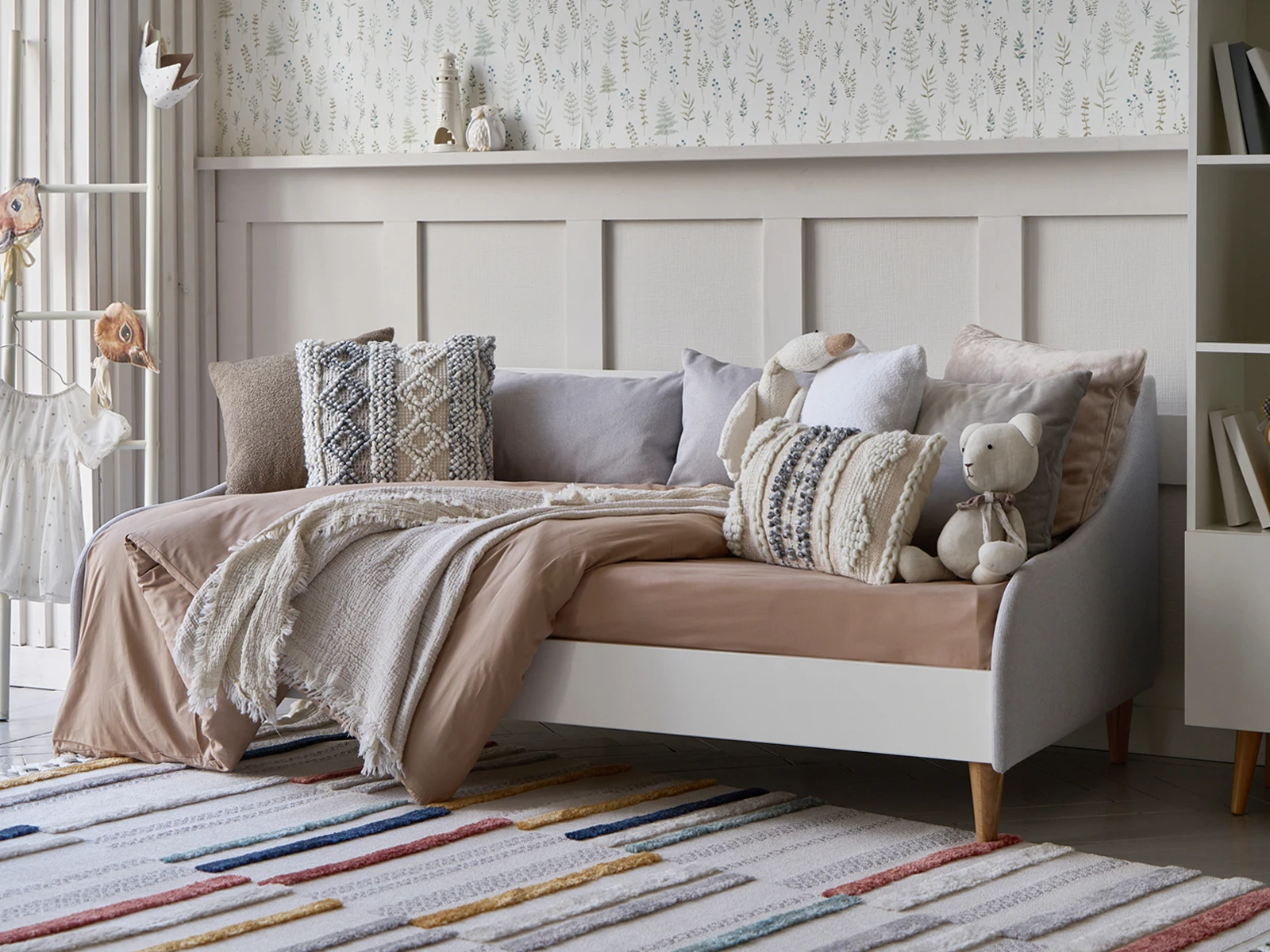 Rili — практичный дизайн, в основе которого скандинавская эстетика. Коллекция состоит из корпусной мебели: комодов, шкафов, стеллажей, сервантов, столов и мягких кушеток. Изделия привлекают гармоничным сочетанием функциональности, универсальности и эргономичности. В центре внимания — лаконичная геометрия, светлые тона, натуральные материалы, качественная фурнитура. Подходят для оформления гостиной, детской, спальни, рабочей зоны, прихожей. Визуально смотрятся легко за счет ножек из бука, которые упрощают процесс уборки и придают моделям воздушность.