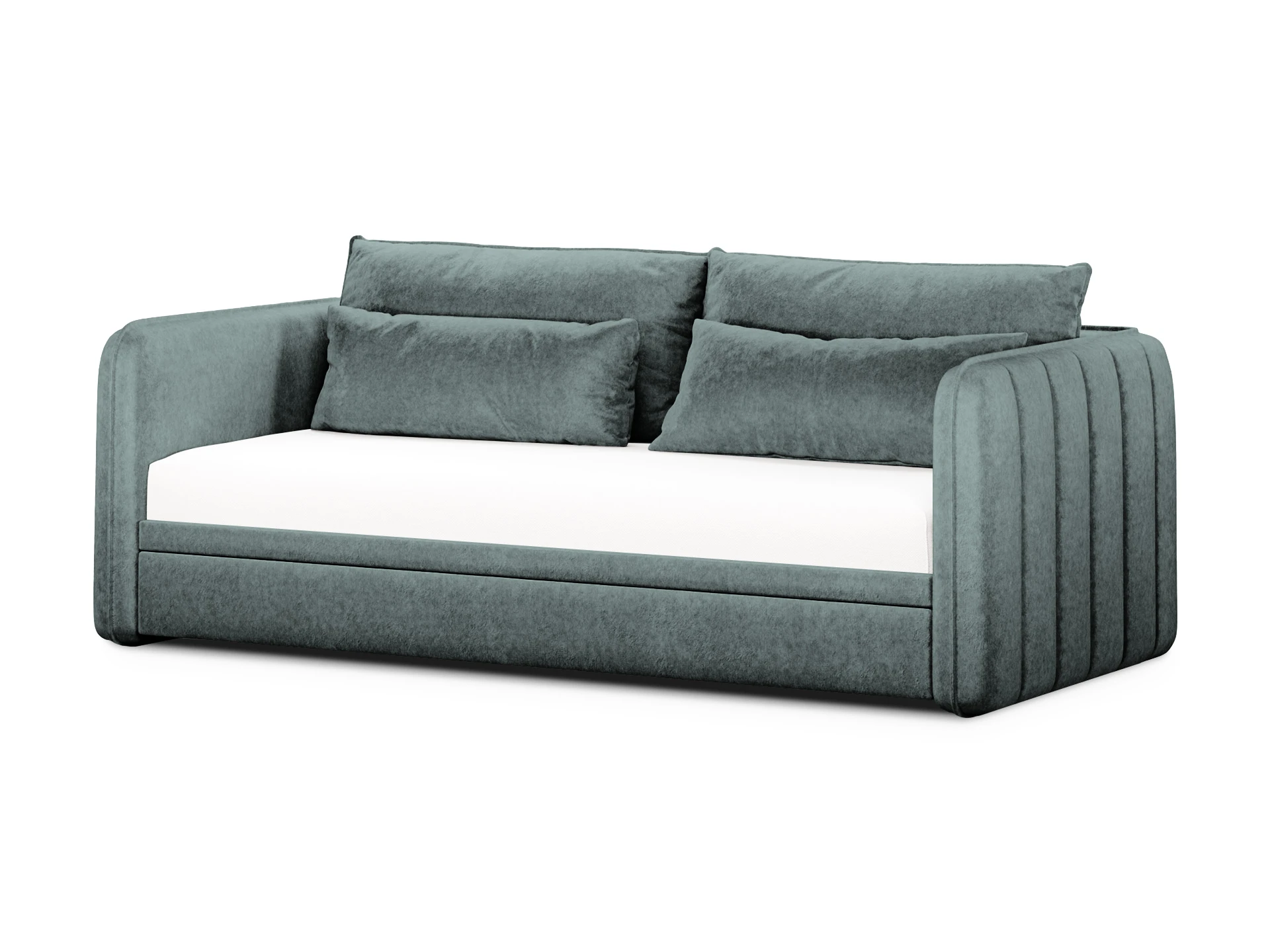 Сиденье имеет комфортную глубину и высоту, спинка оснащена двумя большими подушками из мягкого пенополиуретана, что даёт дополнительную поддержку корпусу и обеспечивает максимально расслабленные ощущения. Подлокотники также укомплектованы прямоугольными подушками из синтепуха, расположение которых можно менять по желанию. Подушки и декоративные вертикальные строчки боковин придают кушетке уютный, объёмный и многослойный вид. Выкатная секция может быть дополнительным спальным местом с нагрузкой до 100 кг. и ящиком для хранения текстиля, сезонных вещей. Можно выбрать цвет и фактуру обивки, которая будет соответствовать вашим индивидуальным предпочтениям. Стилистически нейтральная и практичная кушетка Vicari поможет в реализации разных интерьерных решений и станет элегантным дополнением домашнего пространства.