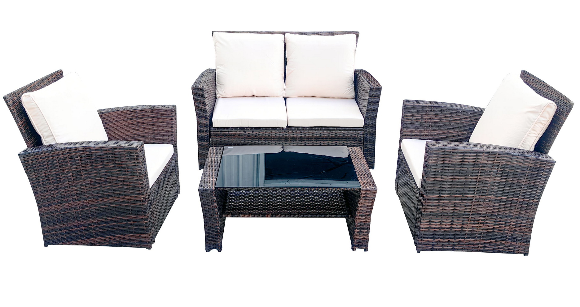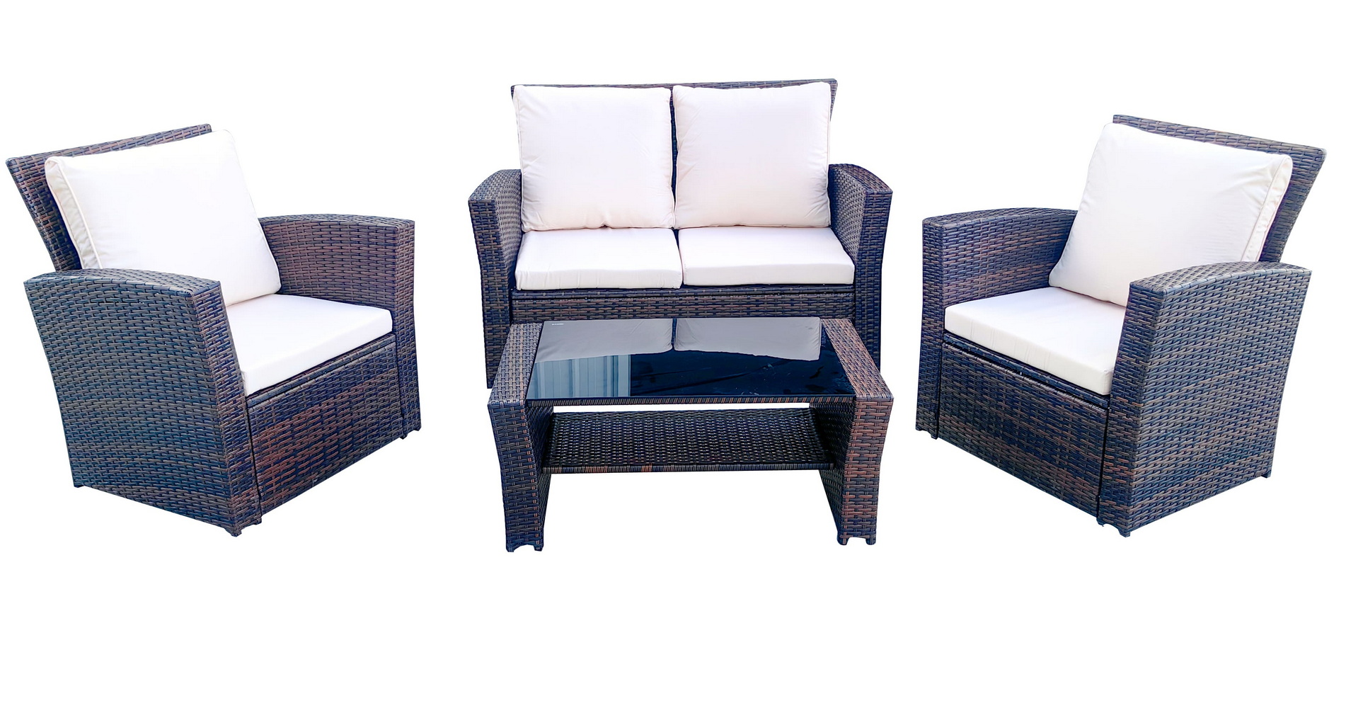 Лаунж зона плетенная из ротанга (2-х диван+ 2 клесла +журнальный столик), цвет коричневый