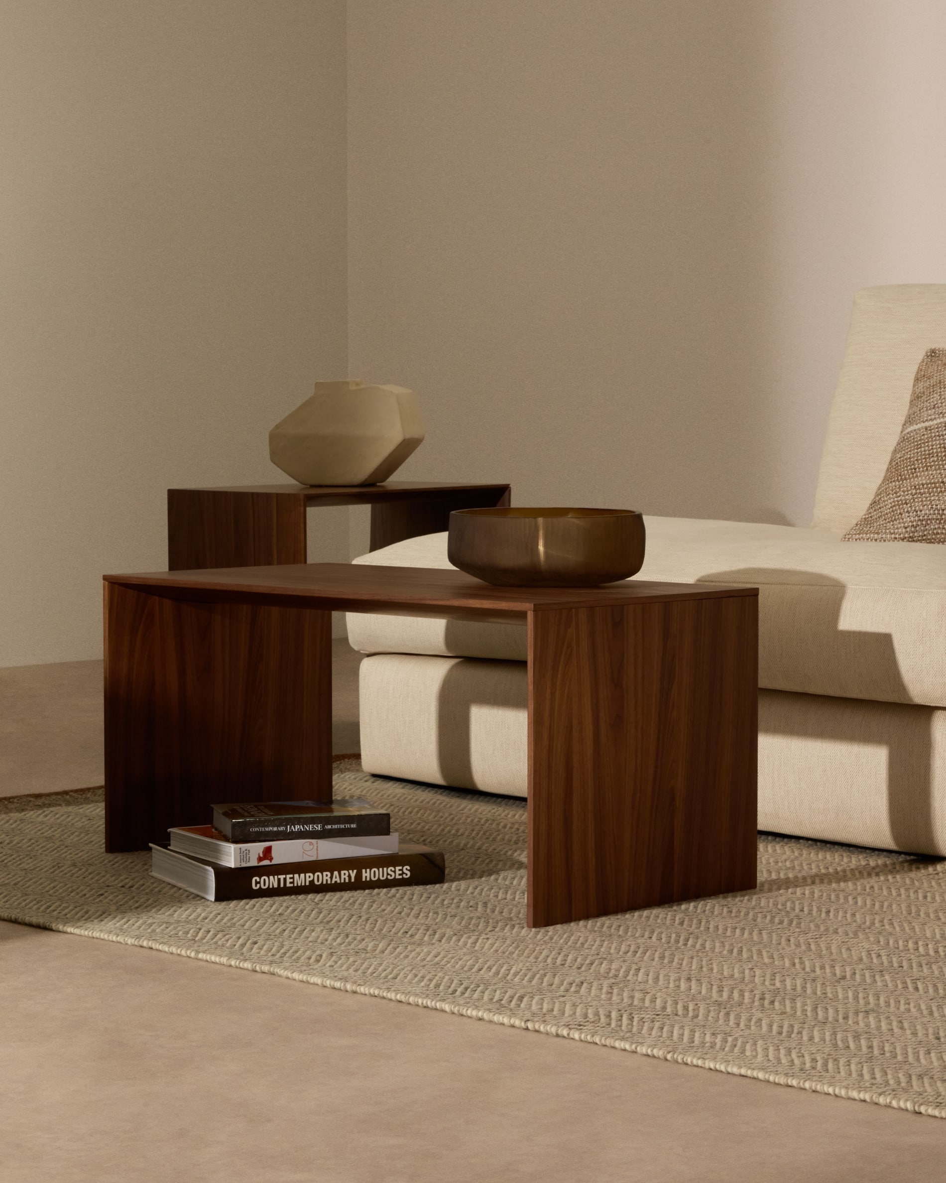 Litto Журнальный столик из шпона ореха с отделкой натурального цвета, 90 x 45 см