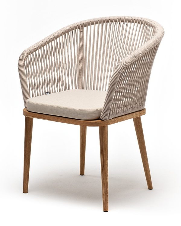 «Марсель» стул плетеный из роупа, основание дуб, роуп бежевый круглый, ткань бежевая 052