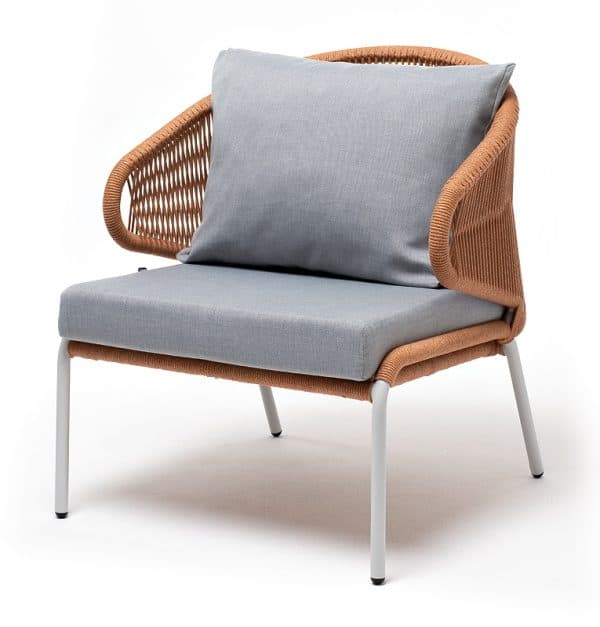 «Милан» кресло плетеное из роупа, каркас алюминий светло-серый (RAL7035) муар, роуп оранжевый меланж круглый, ткань светло-серая