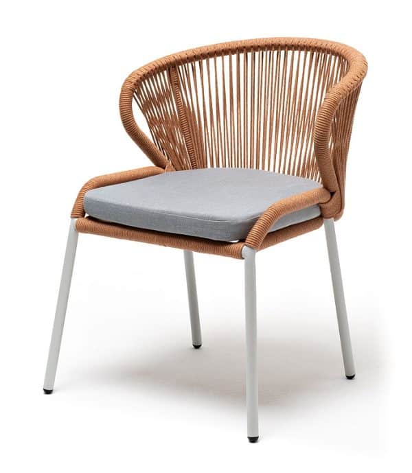 «Милан» стул плетеный из роупа, каркас алюминий светло-серый (RAL7035) муар, роуп оранжевый меланж круглый, ткань светло-серая