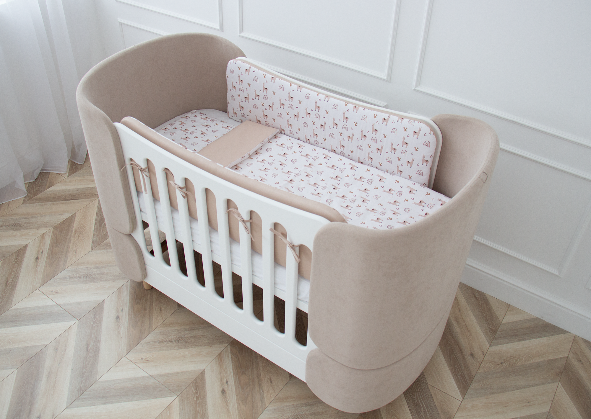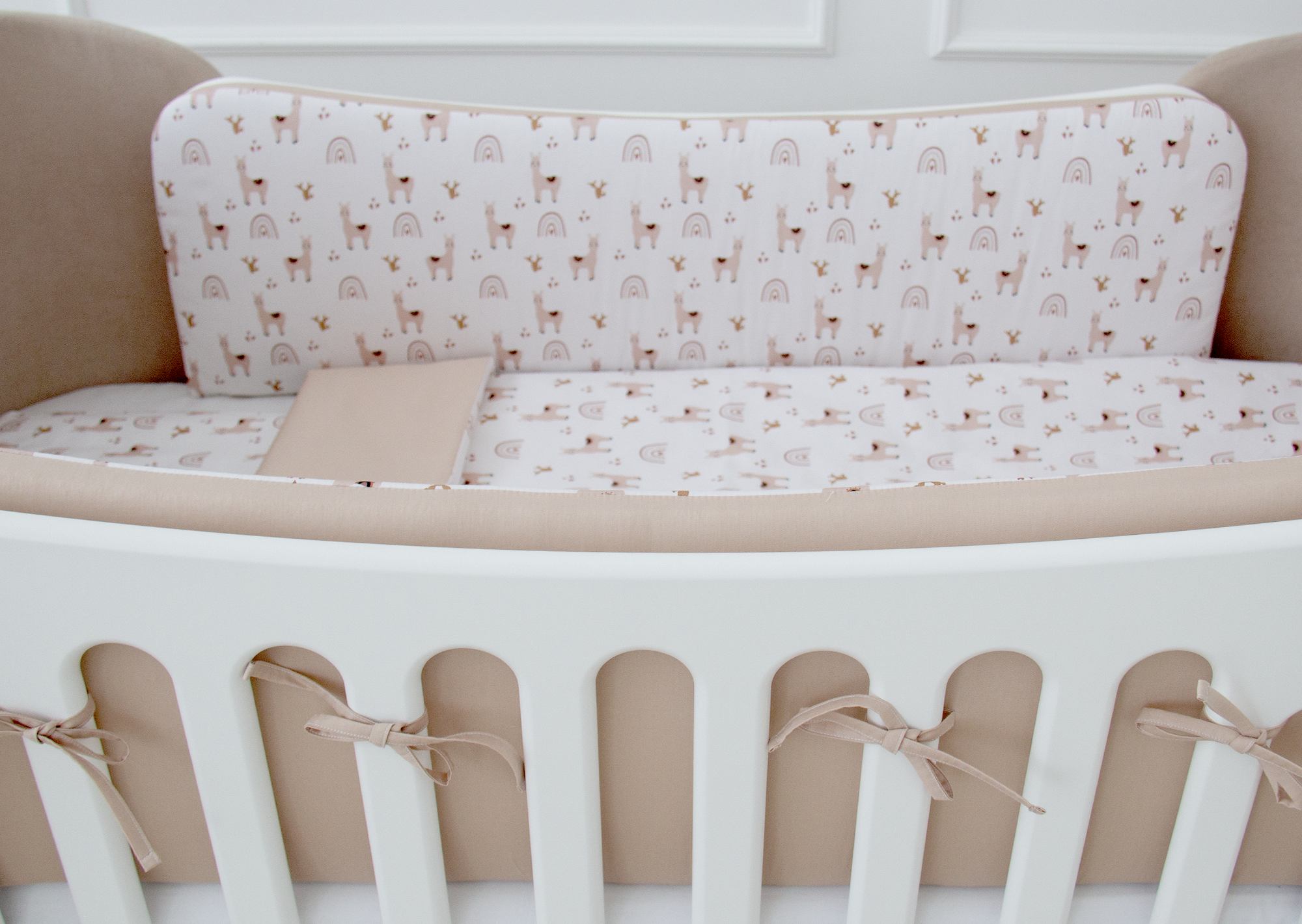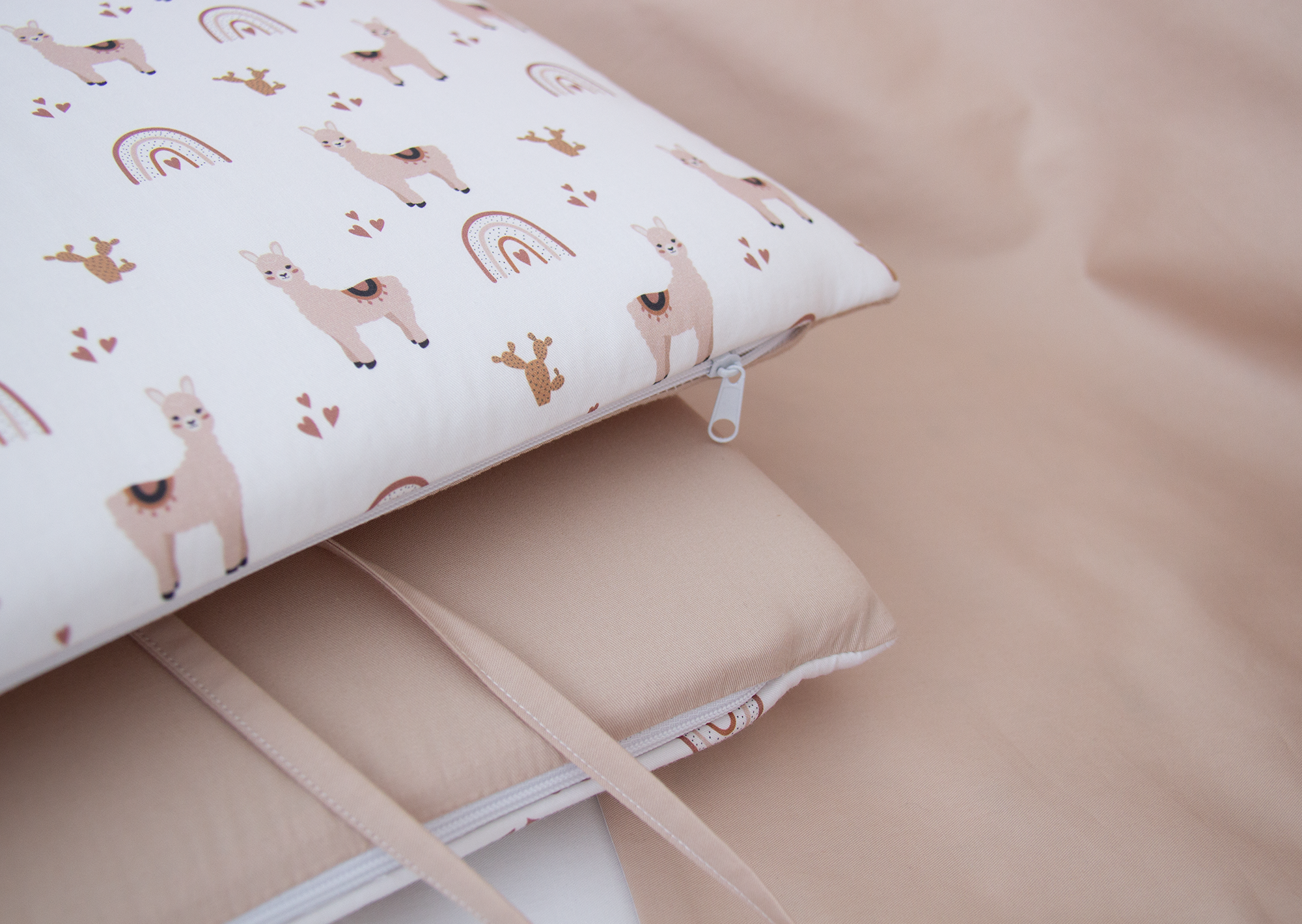 Мягкие бортики для кроватки KIDI soft «Лама» (бежевый, сатин)
